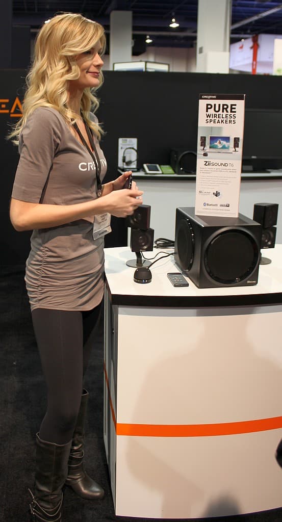 Или это демонстрация target-группы? Кого ещё может сильно заинтересовать передача звука на систему 5.1 через Bluetooth-соединение в домашних условиях… Но, как бы то ни было, основное внимание в экспозиции Creative привлекали те, кто должны были служить привлечению внимания к стендам.