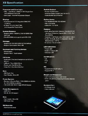 Технические характеристики этого планшета и симпатичную сотрудницу компании, увлечённо рассказывающую об их продукте, можно увидеть на следующих фото: