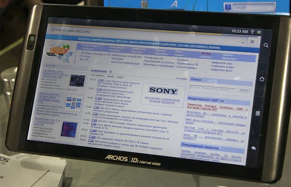Интересно, что около планшета на базе NV Tegra 250, являющегося Tegra 2 стояла табличка о том, что использовано решение от Nvidia Tegra. Странное отношение к собственному продукту. По соседству стоял ещё 7-дюймовый планшет на базе VIA WM8605 с Android 2.1. Почему-то кажется, что мы не увидим в магазинах засилья планшетов этого производителя.