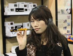 Картриджи можно покупать, а можно возобновлять каплей специального раствора. Но, видимо, тоже до какого-то предела. Несколько минут восторгов по поводу их продукции, несколько фотографий с обещанием отправить их по e-mail (слово сдержано) — и получил в подарок набор из сигареты с парой картриджей и зарядным устройством от USB. Но вот флакончик с жидкостью пришлось купить. Недорого, всего $5, к тому же упросил продать единственный с кофейным ароматом, что у них был. Надеюсь, что другу понравится. Потом я нашёл одну из аналогичных экспозиций какой-то американской компании. По крайней мере, там сидела девушка с европейскими чертами лица :-). Те выпускают даже электронные сигары. Один из посетителей очень интересовался. Он уже видел себя на корте для гольфа с такой сигарой во рту. Я не знаю, насколько это всё хорошо работает, но если хотя бы половина тех, кто хочет бросить курить, сможет это сделать с помощью электроники, а другая — перейдёт на эту продукцию, то наша жизнь станет немного чище.