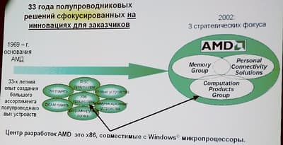 Разумеется, присутствующими были заданы некоторые вопросы о том, каким образом будут развиваться технологии AMD для рынка карманных ПК и беспроводных устройств и интерфейсов. Чтобы не отклоняться от рассказа о теме пресс-конференции, пообещаю, что, по крайней мере, в наших новостях, обязательно будет размещена информация об этих направлениях.