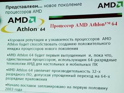 Выпуск новых процессоров Athlon 64 ожидается, как и сообщалось ранее, в конце первого квартала — самом начале второго. Ближе к лету планируется появление версии Mobile Athlon 64. По поводу этих процессоров мне добавить нечего, все основные факты и тезисы, рассказанные в ходе пресс-конференции, уже были освещены в новостях. Пока мы с Сашей Медведевым задавали различные вопросы технического характера, у меня как-то вылетело из головы попросить прокомментировать появившиеся недавно в Сети слухи о том, что в первом полугодии число выпущенных Athlon 64 будет исчисляться лишь сотнями тысяч, и только во втором полугодии 2003 — миллионами. Впрочем, известно, что компании весьма неохотно комментируют слухи такого «гадательного» характера. Раз уж «проехали», хотелось бы, что называется, в догонку, пожелать компании хорошего процента выхода годных чипов Athlon 64, а также, в момент их появления на рынке, не забывать про одну из компонент своей стратегии — «разумную цену».