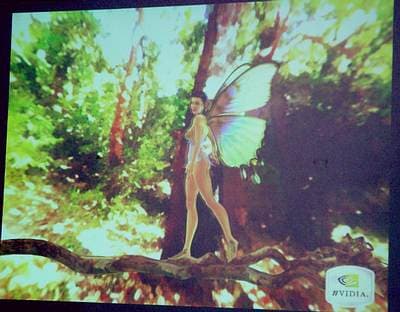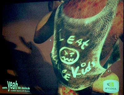 После рассказа о GeForceFX наступило время шоу. Крутившиеся на экране демки с кровожадным танцующим и прикалывающимся людоедом, прелестной эльфой, умудряющейся отражать на своем лице всевозможные эмоции, автомобилем, на ваших глазах превращающимся благодаря виртуальной машине времени из сияющей лаком новинки в ржавую развалюху, думаю, никого не оставили равнодушным. Впрочем, такие вещи не передать ни словами, ни скриншотами. Действительно, нужно видеть глазами, как с помощью движков-регуляторов меняется освещение, мимика, детализация — да что угодно, влоть до глубины ржавчины на кузове машины или «пупырчатости» шкуры людоеда, и все это в реальном времени.