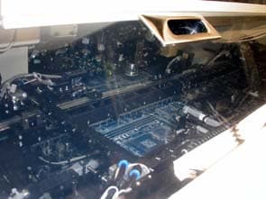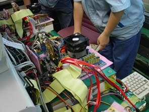 Особенно занятно выглядит процесс установки специальной площадки для крепления кулеров процессоров семейства Pentium 4 и нанесение наклеек на микросхемы BIOS.