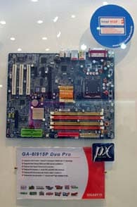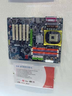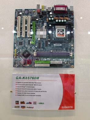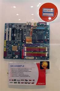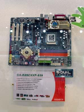 Также не были забыты материнские платы для процессоров AMD Athlon64. Для процессоров Athlon64 FX на стенде Gigabyte было представлено решение с шиной PCI-E: