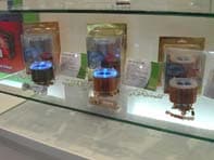 Другая половина стены была кучно усеяна видеокартами, где поклонники любой из двух конкурирующих «компаний-чипсетопроизводителей» могли выбрать себе карту по душе. Линейка карт на базе чипов от ATI была представлена наиболее полно. Присутствовали платы как для AGP шины, так и для PCI-Express, от X800Pro (XT на тот момент еще не было) до X300SE.