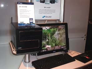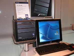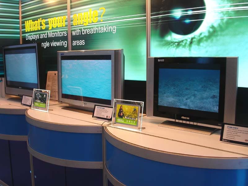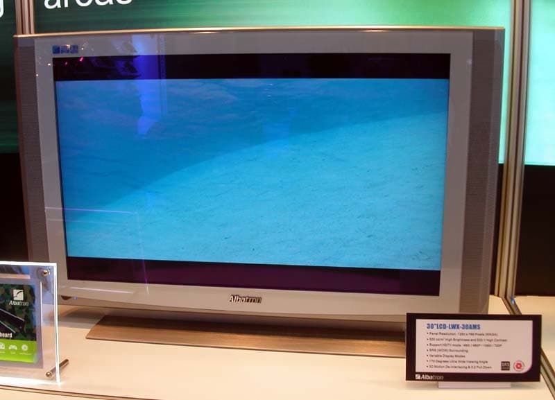 В экспозиция Albatron сразу обращают на себя внимание большие LCD-телевизоры.