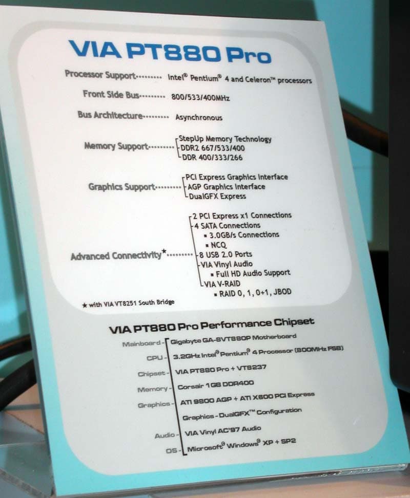 Другой чипсет — PT880 Pro ориентирован на другую нишу и позволяет одновременно работать и интерфейсу PCI-E, и AGP, впрочем, как и по отдельности.