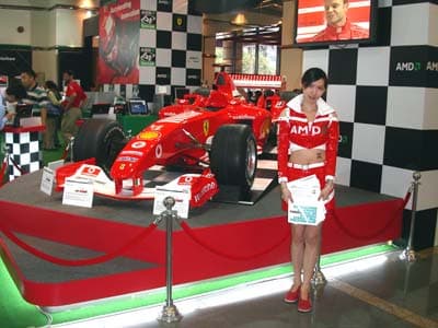 На стенде AMD обращает на себя болид Формулы 1 команды Ferarri, спонсором которой AMD является.