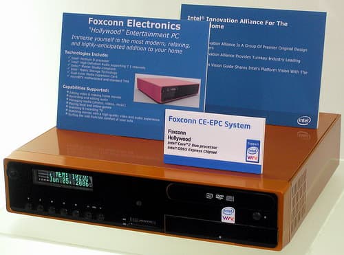 Вполне очевидно, что подобные домашние компьютеры для Viiv также могут (и должны ;)) с успехом использовать новейшие платформенные компоненты Intel, как, например, этот системный «развлекательный» (можно даже сказать — «голливудский») медиаблок от Foxconn,