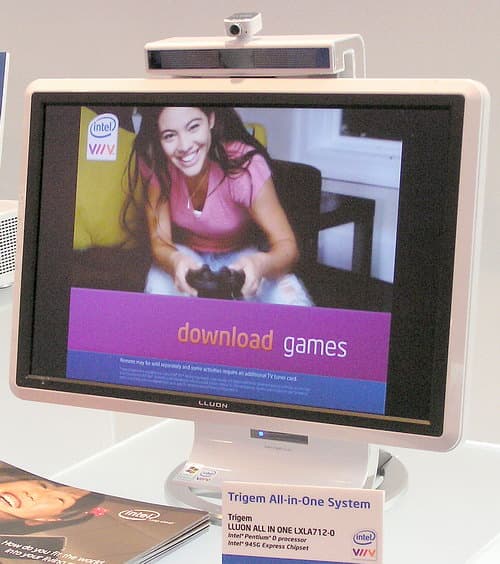 На этом фоне буйства новейших технологий Viiv-система от Trigem на Pentium D с чипсетом Intel 945G по типу «все включено» (All-in-One), пусть даже выполненная в виде «стойки» для монитора, то есть без отдельного привычного системного блока, смотрелась уже каким-то архаизмом :).