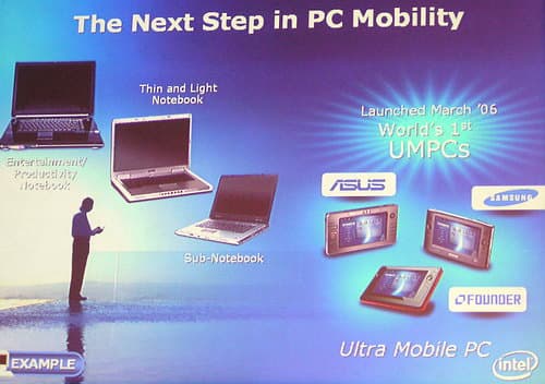 Немало внимания посетителей привлекали и присутствовавшие на экспозиции Intel входящие в моду UMPC — как на процессоре Celeron M от компании Founder,
