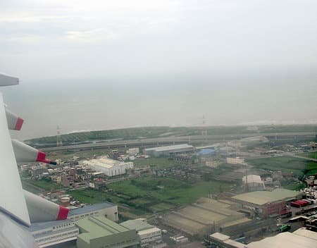 Подлетая к Тайваню сквозь плотную серую пелену облаков,