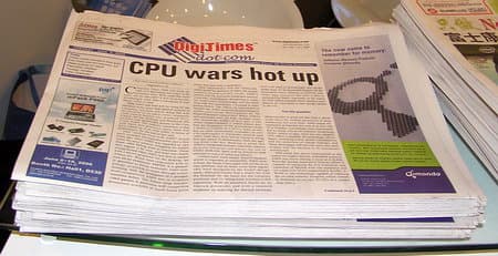 На одном из весомых стендов Computex, возглавляющем всю экспозицию Intel, занявшую фактически целый этаж одного из павильонов, на видном месте лежала стопка свежих (от 6 июня) газет DigiTimes (главного тайванького компьютерного издания), где первая полоса начиналась целевой «компьютексовской» статьей «CPU wars hot up» (игра слов; буквально: процессорные войны накаляются),