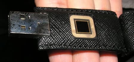 и в составе обычного USB-Flash-драйва (здесь установлен ИК-сканер, по которому надо провести пальцем).