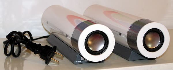 А вот и компактная стереоакустика со встроенным блоком сетевого питания, выполненная в виде… трубочек