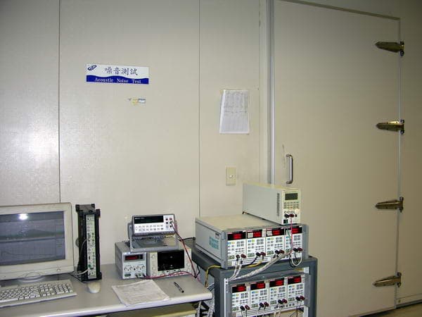 Обязательным пунктом проверки является изучение уровня шума, издаваемого БП. Для чего образец помещают в специальную камеру, изолированную от проникновения посторонних шумов. Результат же фиксируют снаружи, который передаёт на компьютер чувствительное оборудование, расположенное внутри комнаты.