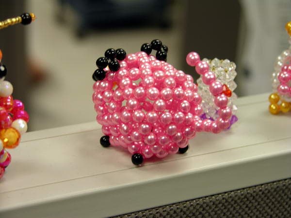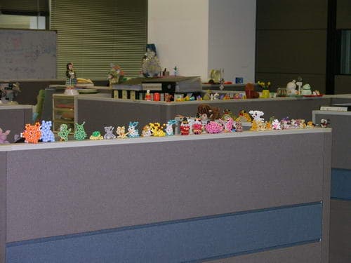 Некоторые сотрудники стараются разнообразить свои «кубики», в результате на перегородках появляются забавные зверьки ручной работы из бусинок.