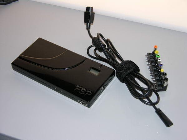 Кстати, для внешних устройств, таких как ноутбуки, цифровые и видеокамеры, MP3-плееры и им подобные, FSP выпустили универсальный блок питания со сменными насадками, позволяющие «запитать» практически любое устройство. Данное решение даёт возможность брать с собой в дорогу не кучу адаптеров, а один — универсальный. Устройства, умеющие подзаряжаться через USB также можно подключить к FSP NB90 или NB120.