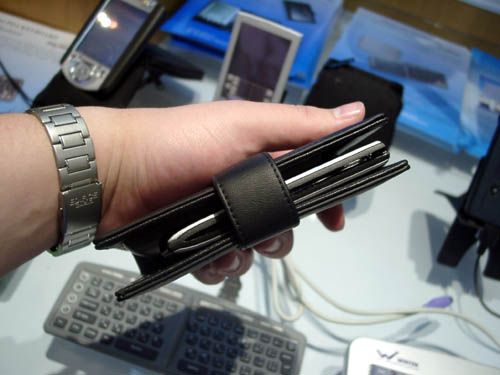 Тут же показано интересное решение, сочетающее в себе чехол для КПК и клавиатуру.
