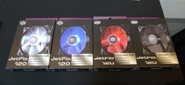 В стане представителей воздушного охлаждения среди спектра «легкомысленных» разноцветных вентиляторов Cooler Master JetFlo 120, впервые продемонстрированных еще во время CeBit в Ганновере, на стенде были также замечены и «серьезные» процессорные кулеры серии V8. 120-миллиметровые вентиляторы Cooler Master JetFlo 120 имею LED-подсветку, а с помощью ШИМ их скорость регулируется в диапазоне 800—2000 об/мин. При этом максимальная производительность достигает 144,4 м³/ч.