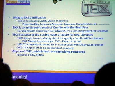 Раз уж речь зашла о THX, разумно будет кратко остановиться на самой сертификации, и объяснить, почему она так важна. Согласно Сreative, это своего рода «Печать ОТК», гарантирующая высокое качество сертифицированной техники, которое оценивается по многим параметрам.