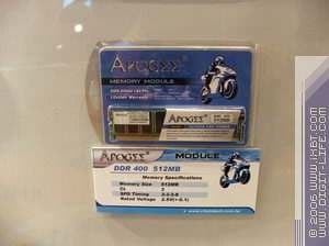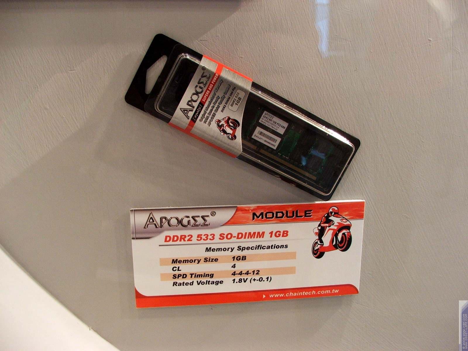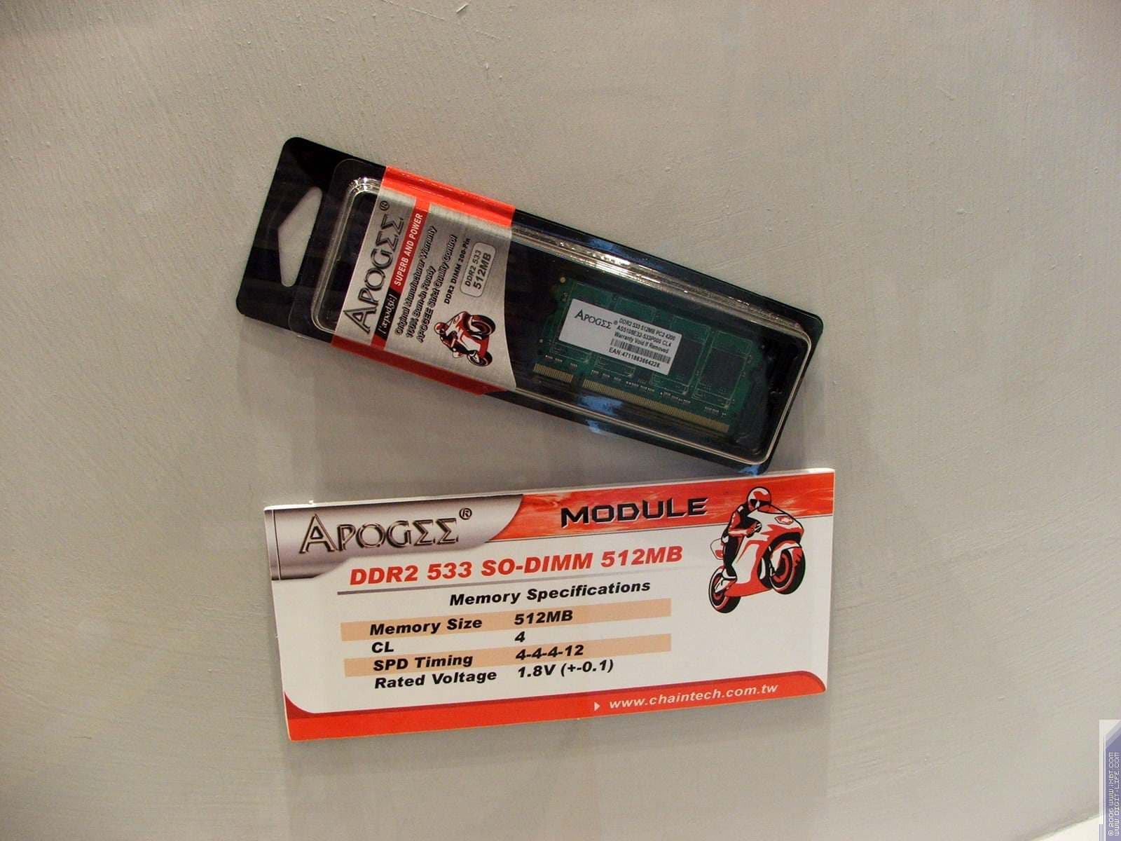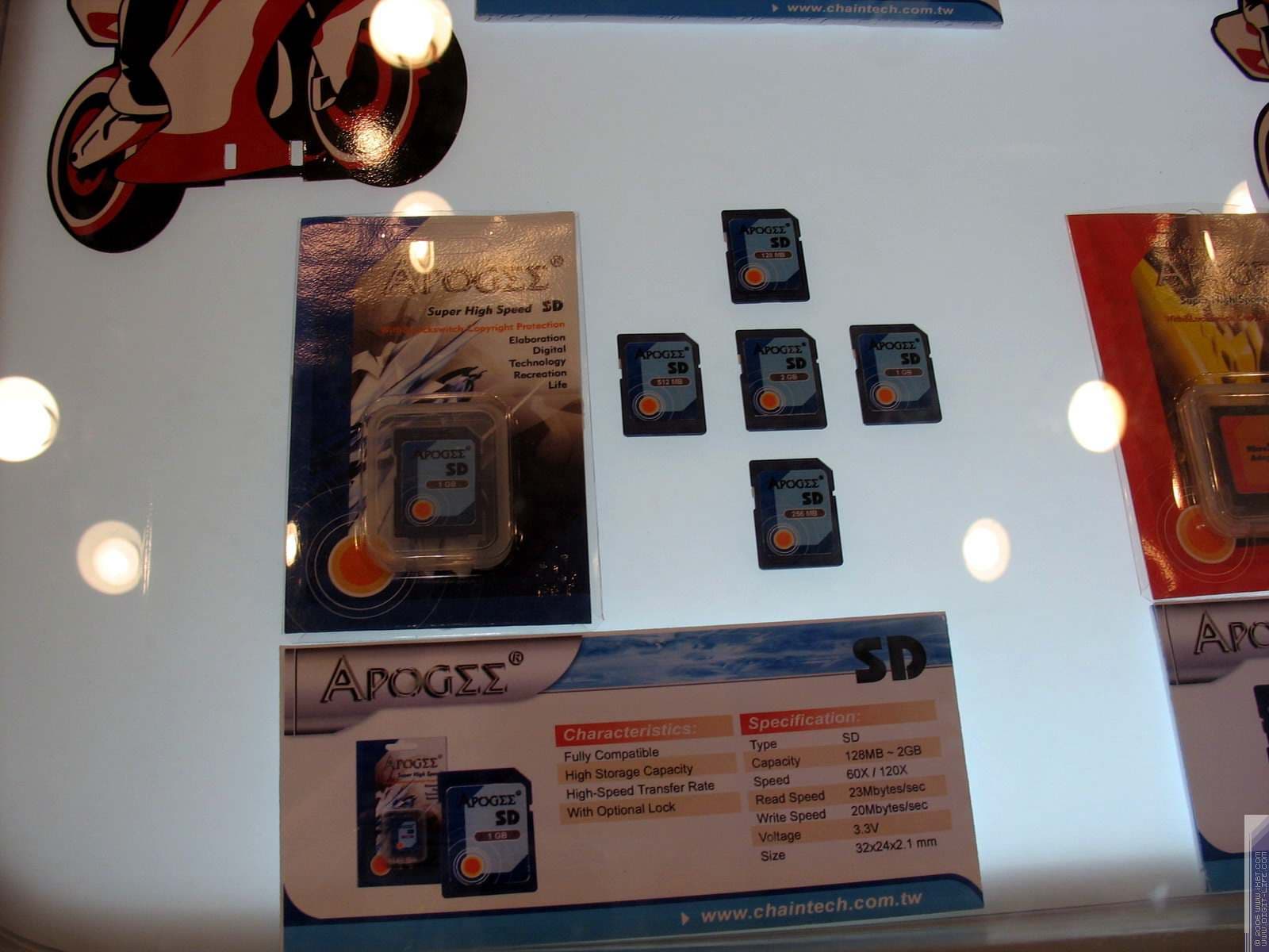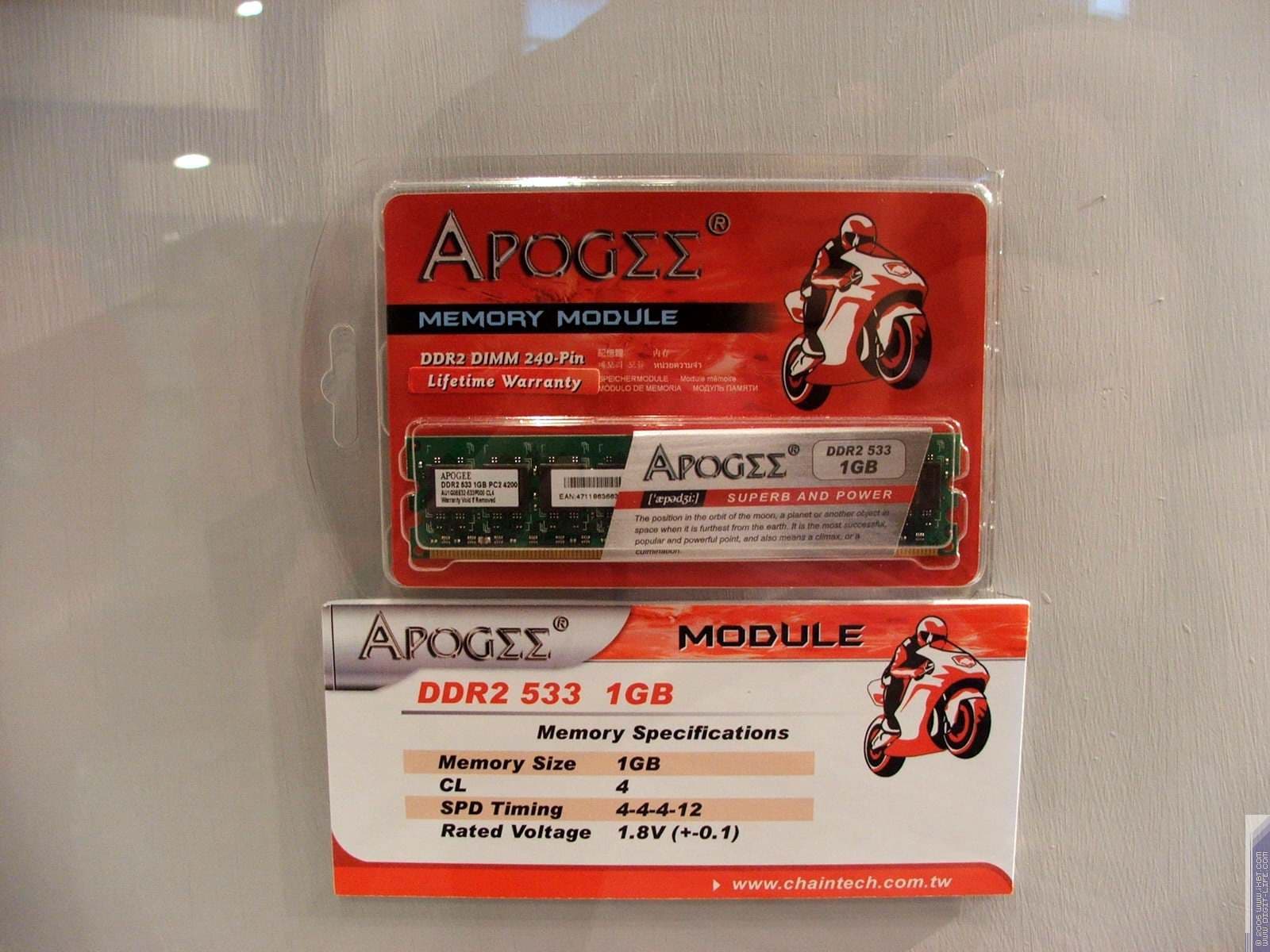Ну и конечно, новинки от Chaintech — всевозможные модули и микросхемы памяти. Для этого вида продукции была выбрана известная марка APOGEE.