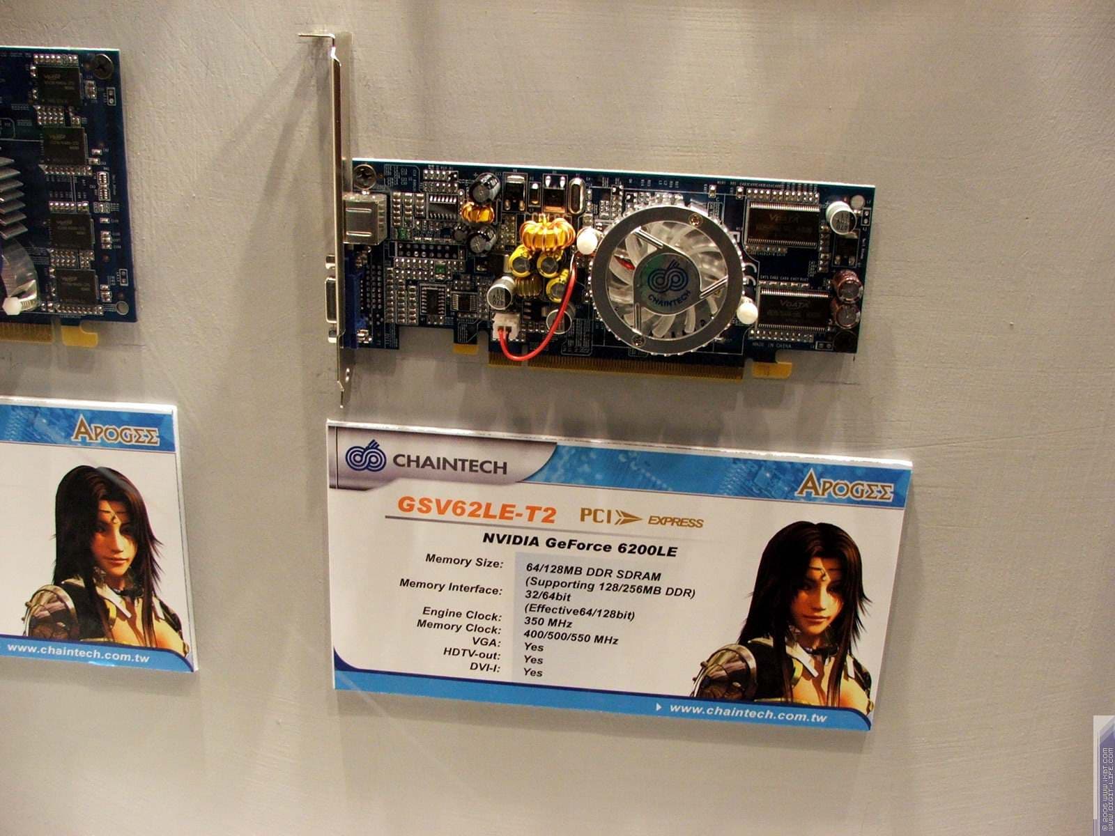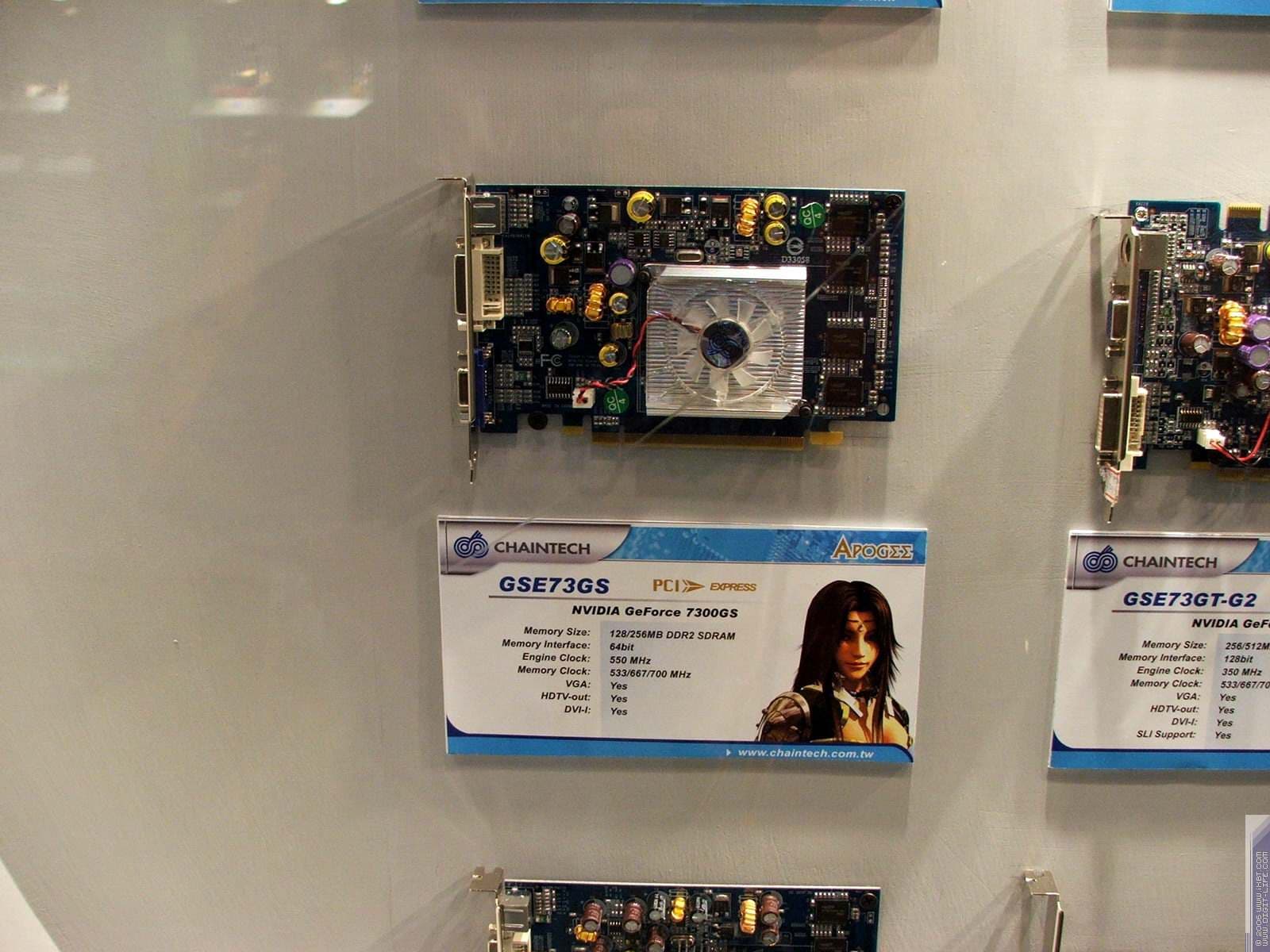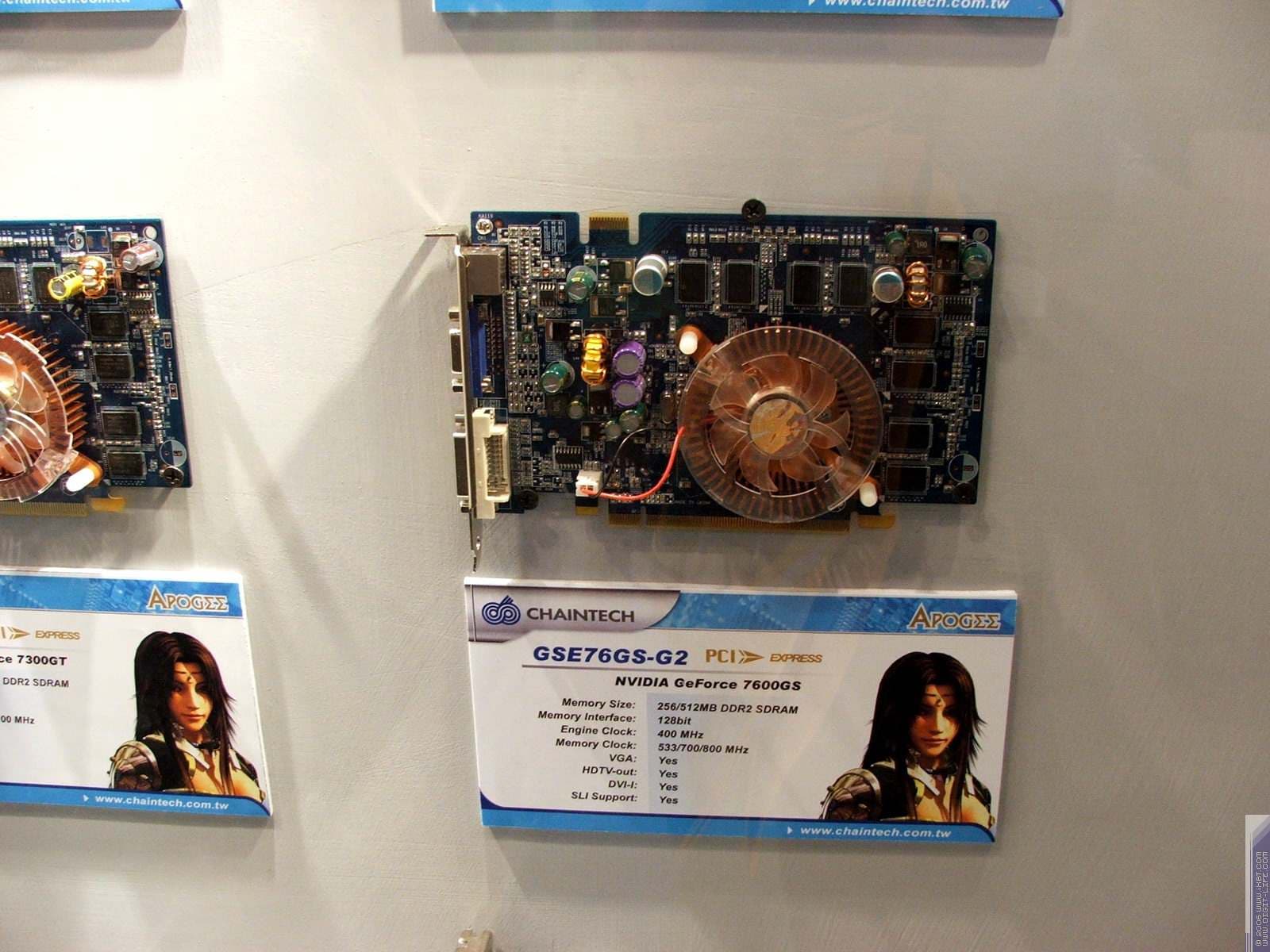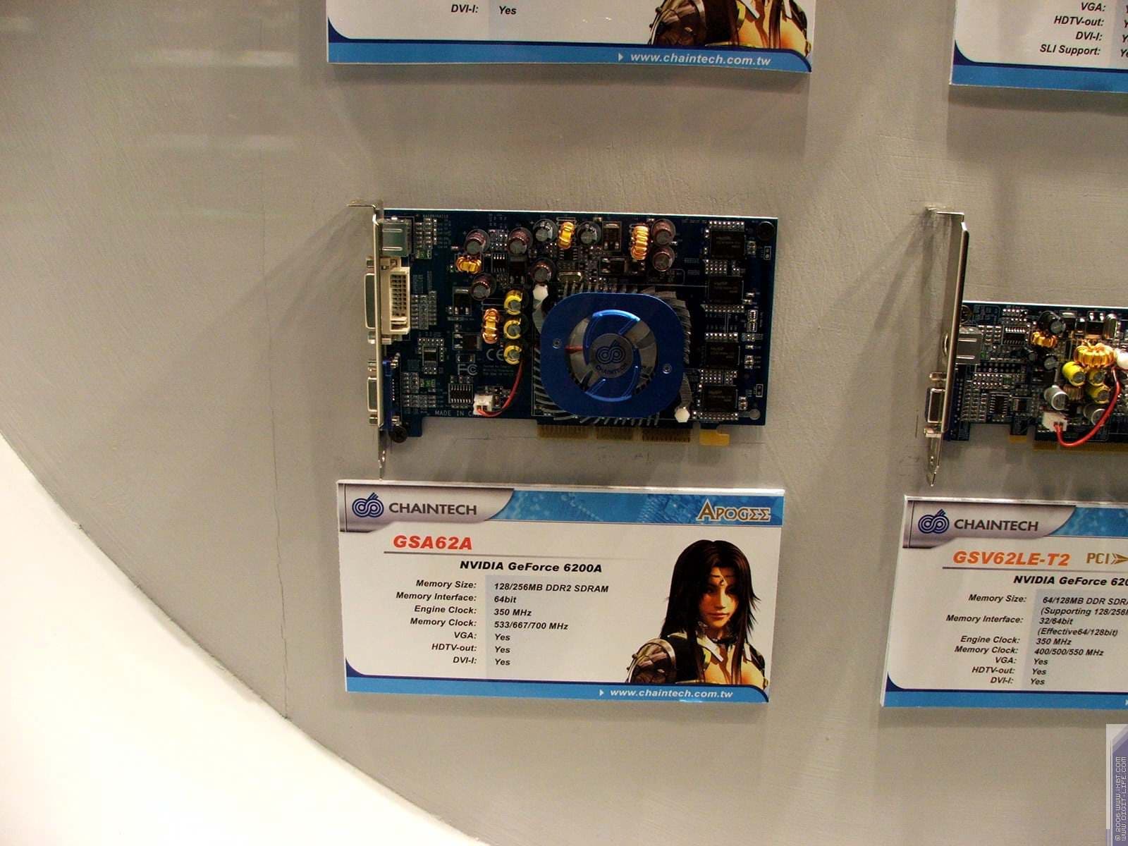 Ну и как я уже ранее говорил, производство видеокарт будет также в центре внимания новой компании. На стенде было представлено достаточно большое количество новинок в этой области. Надо заметить, что Chaintech по-прежнему остается приверженцем только одного производителя графических процессоров — NVIDIA.