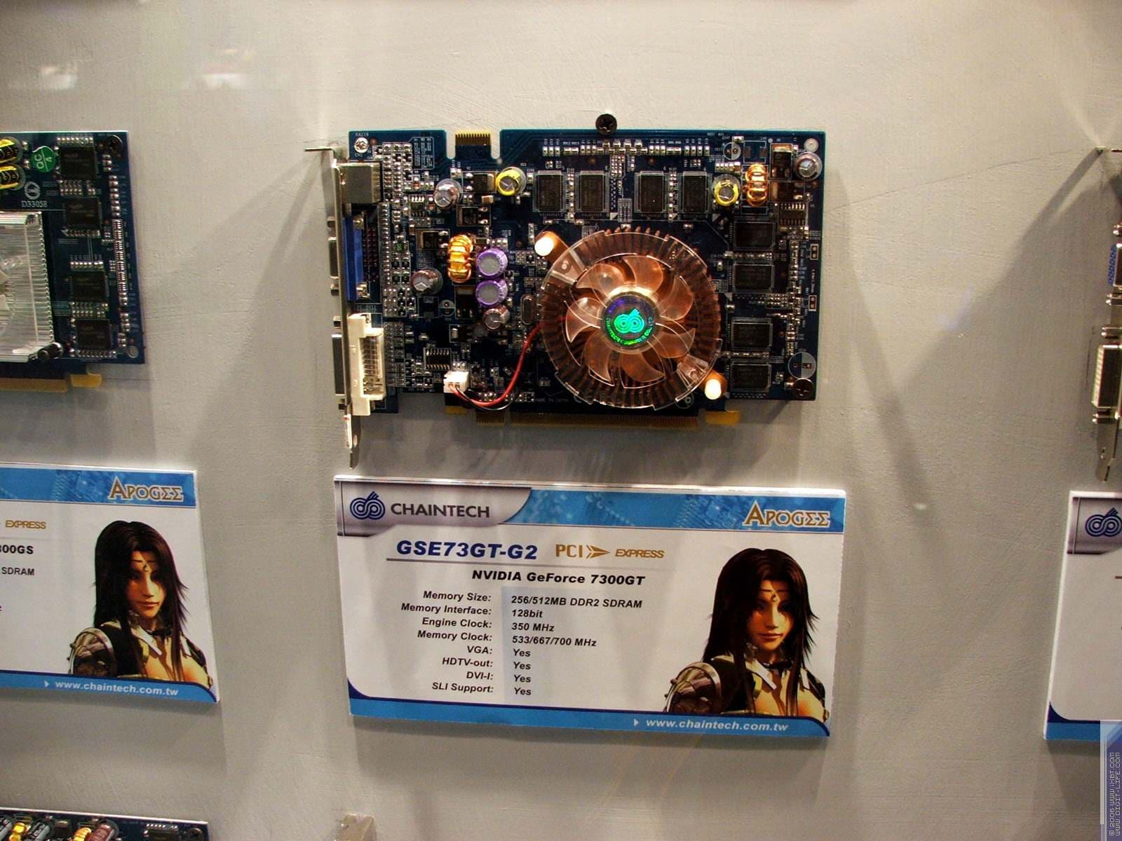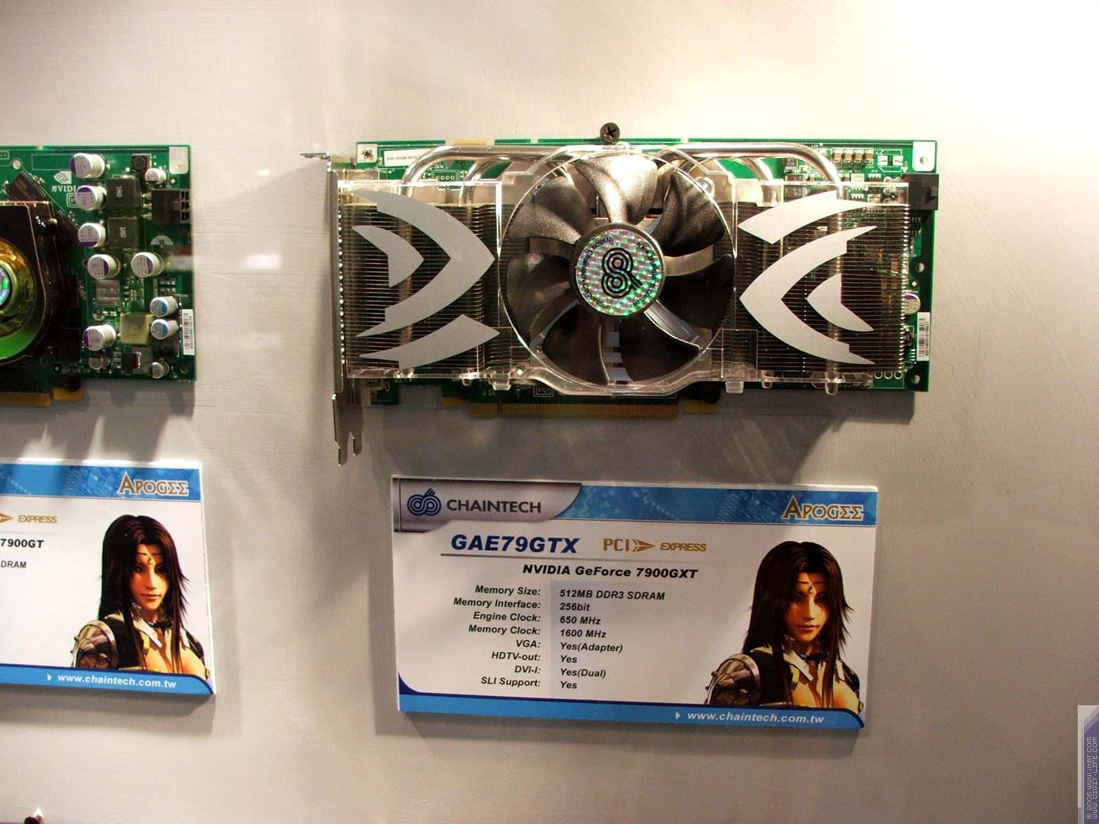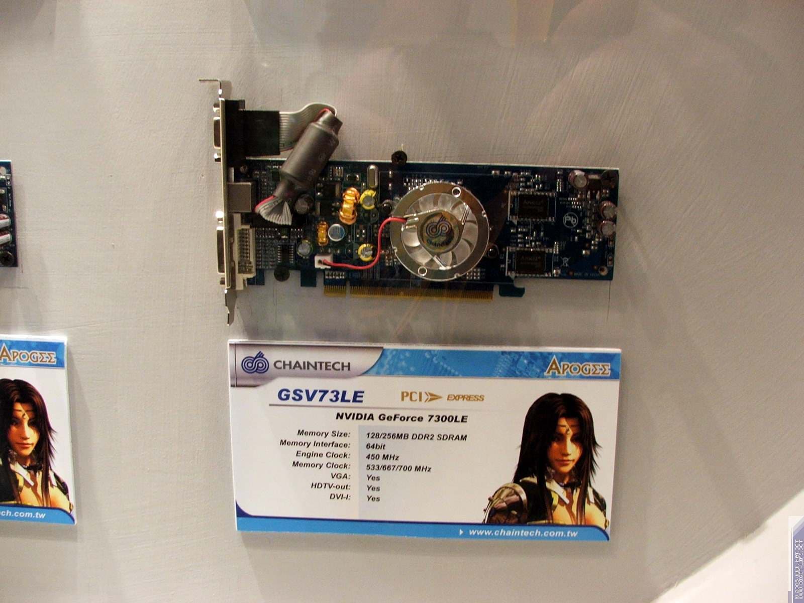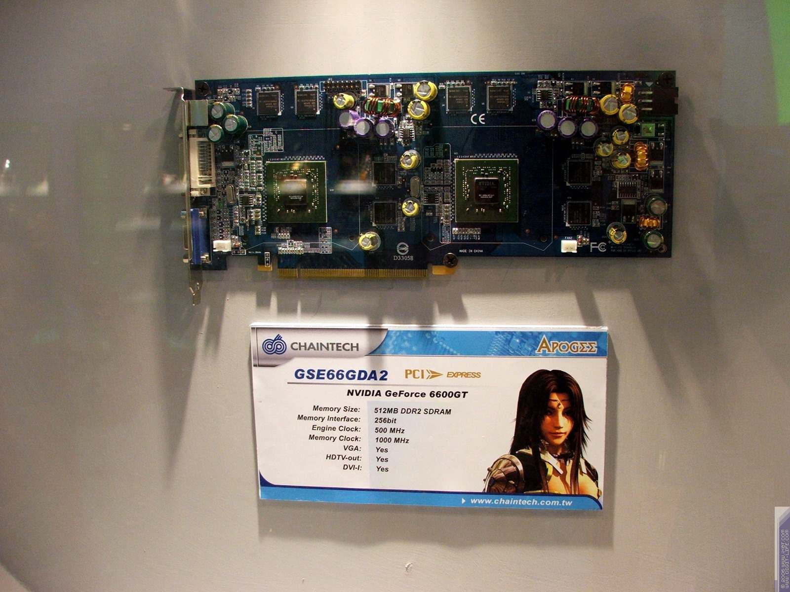 Ну и как я уже ранее говорил, производство видеокарт будет также в центре внимания новой компании. На стенде было представлено достаточно большое количество новинок в этой области. Надо заметить, что Chaintech по-прежнему остается приверженцем только одного производителя графических процессоров — NVIDIA.