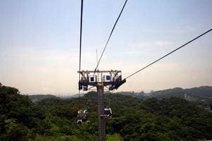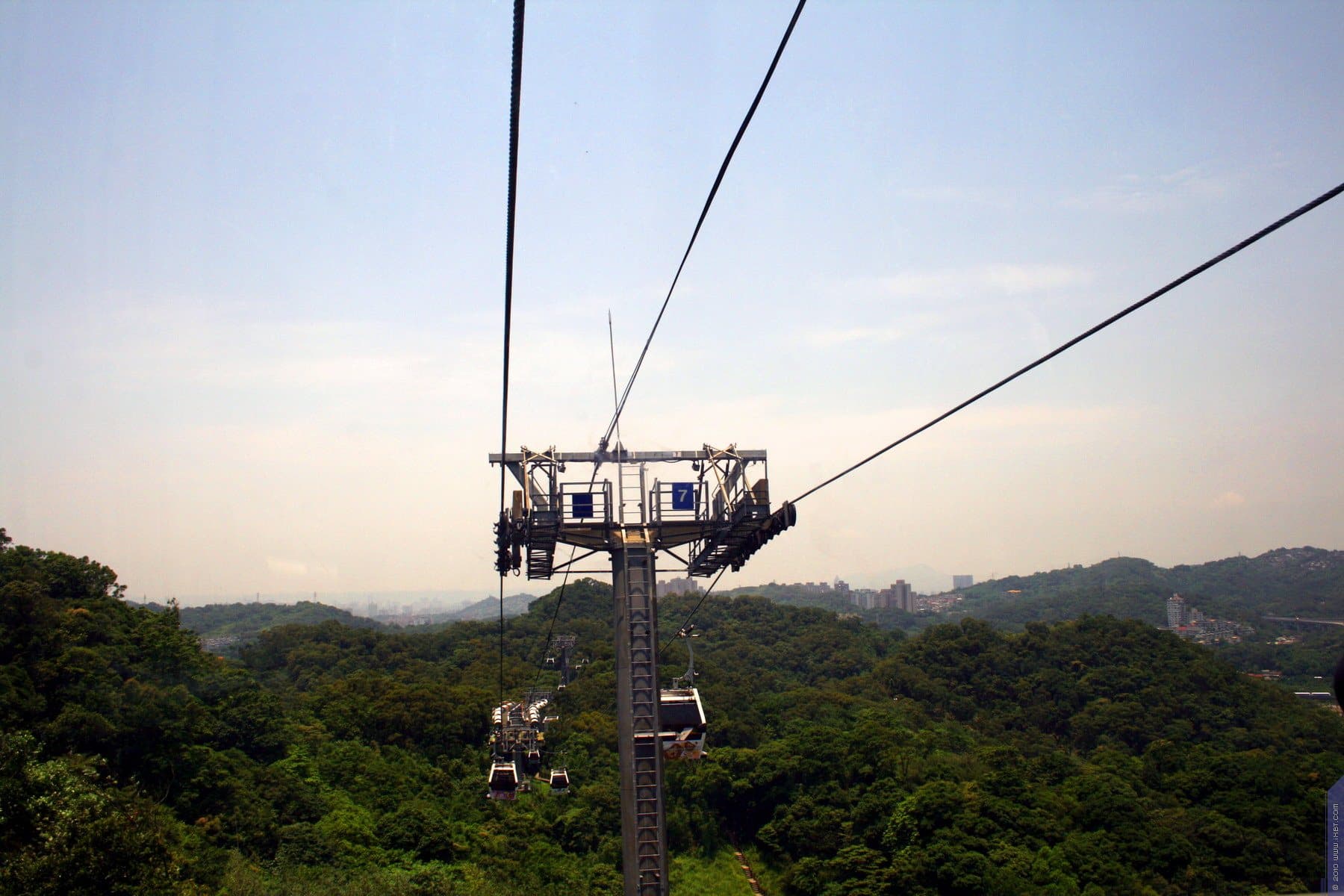 Мы добрались до станции метро Taipei Zoo и успешно пересели на канатку, именуемую Maokong Gondola. Она поднимается вверх на гору и тянется от горы к горе на многие сотни метров. Всего на ней четыре промежуточных станции, и общая длина канатной дороги свыше 5 км.