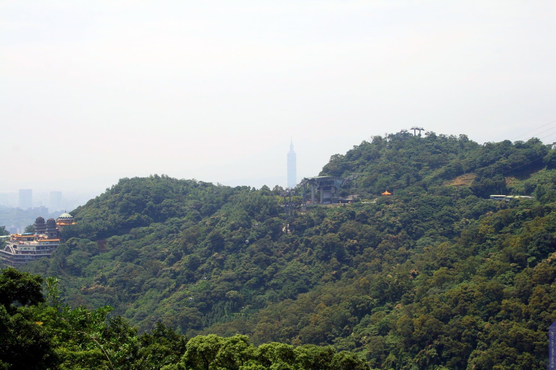 Собственно, чтобы посмотреть на Тайбэй сверху, поглазеть на удивительную панораму гор, из которых самым непостижимым образом торчит небоскреб Taipei 101, мы сюда для этого и прибыли.