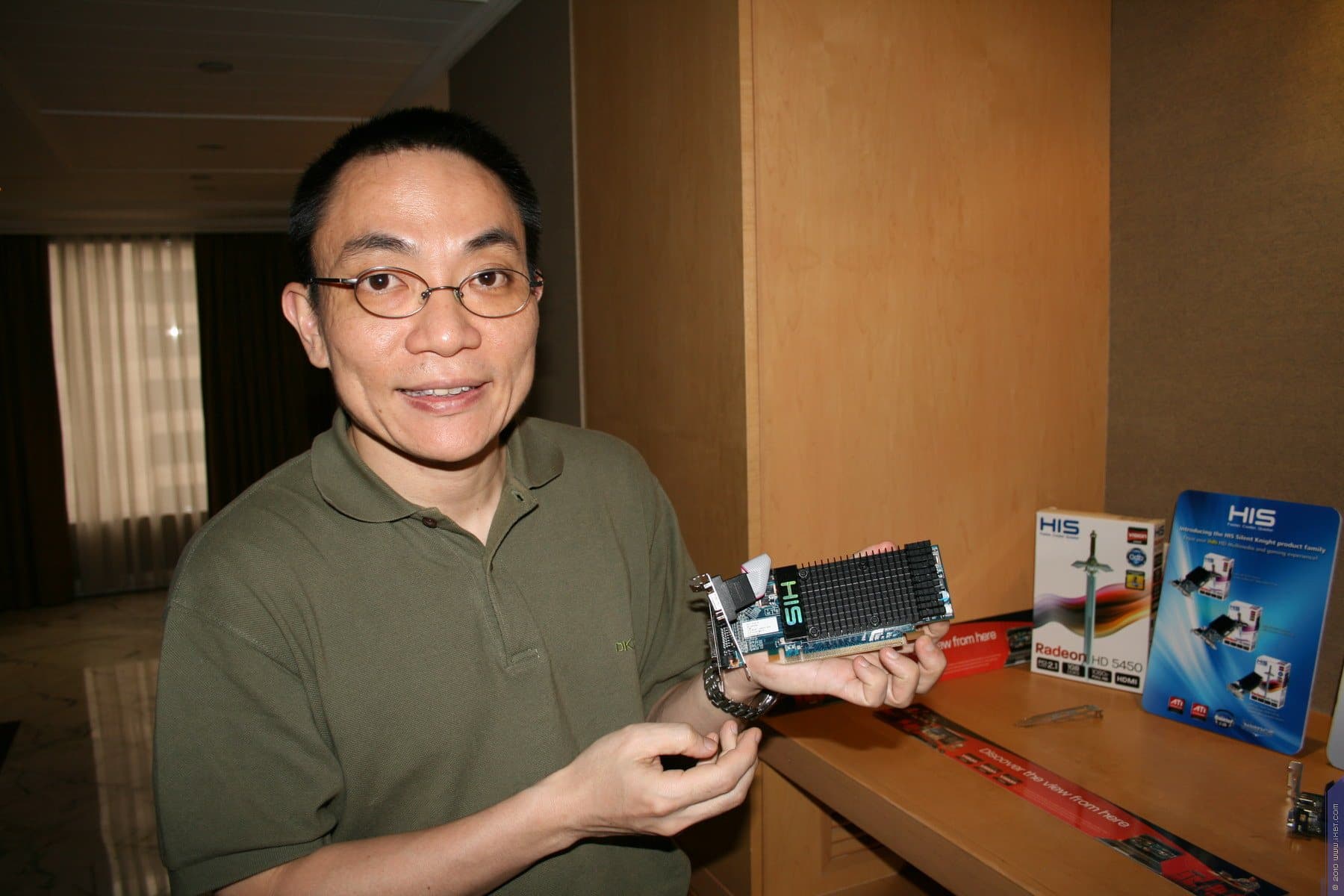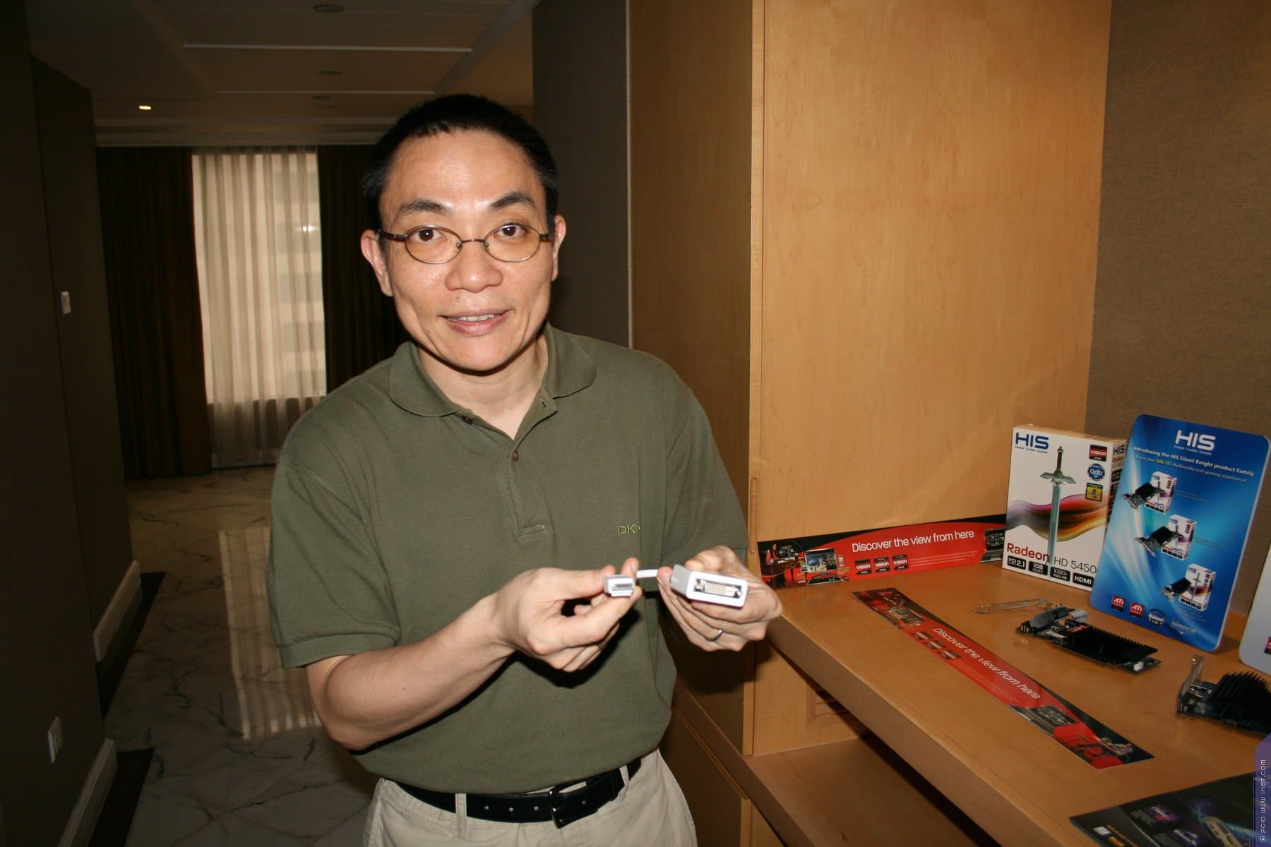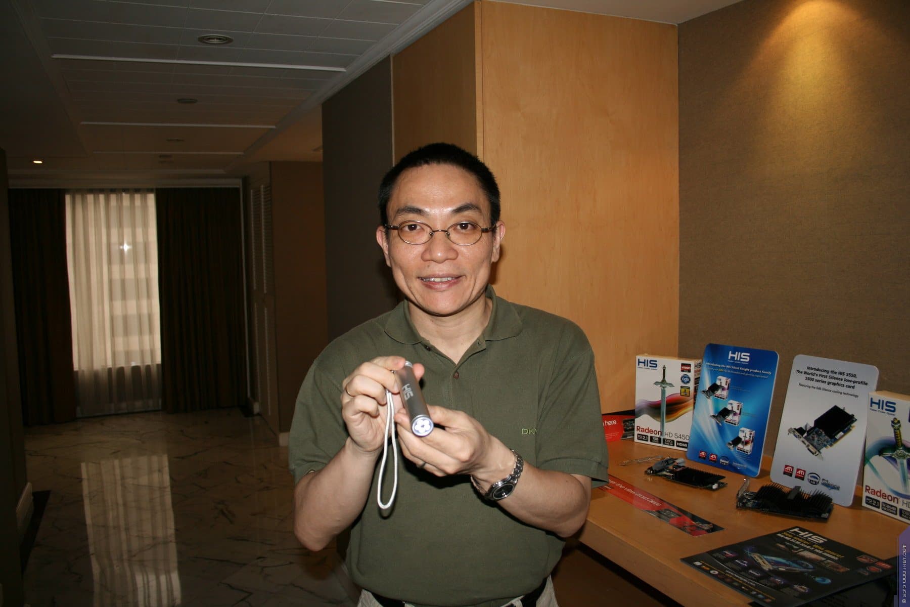 Однако разочарованием стало то, чем же решила похвастаться компания HIS. Ее топ-менеджер Питер Йенг без тени смятения, даже с гордостью, демонстрировал… кабели DVI-to-DP, DP-to-HDMI, а также… фонарик, работающий на солнечных элементах ценой в… 30 долларов США (это не опечатка, тридцать долларов США!). Да, уже как некий побочный продукт лежала и видеокарта Radeon HD 5570 с пассивной СО.