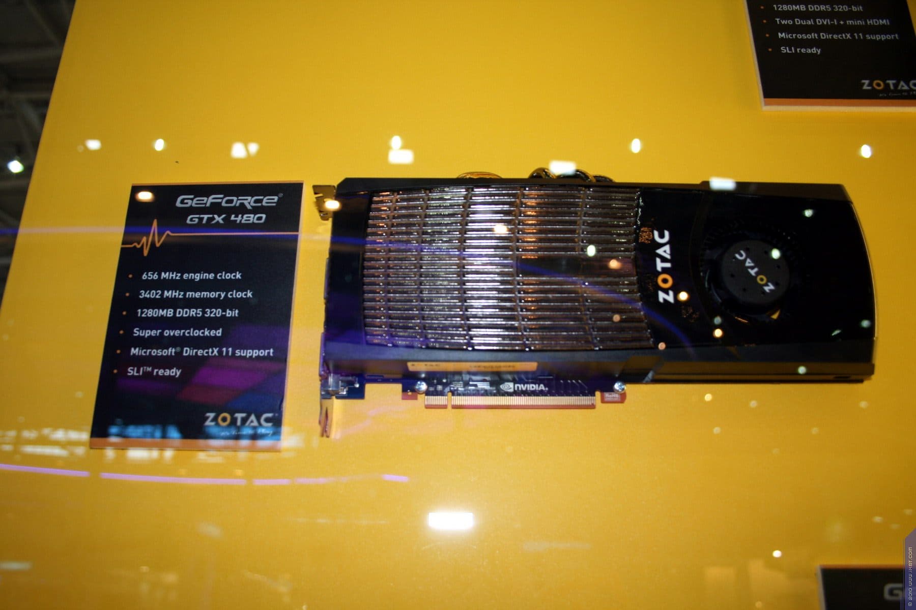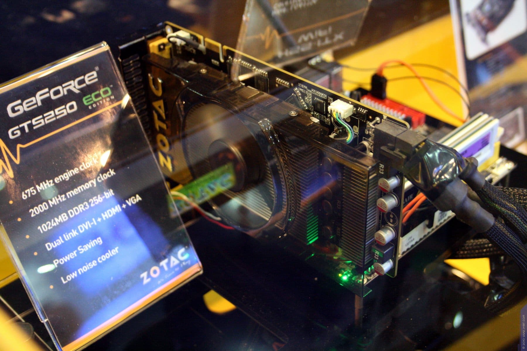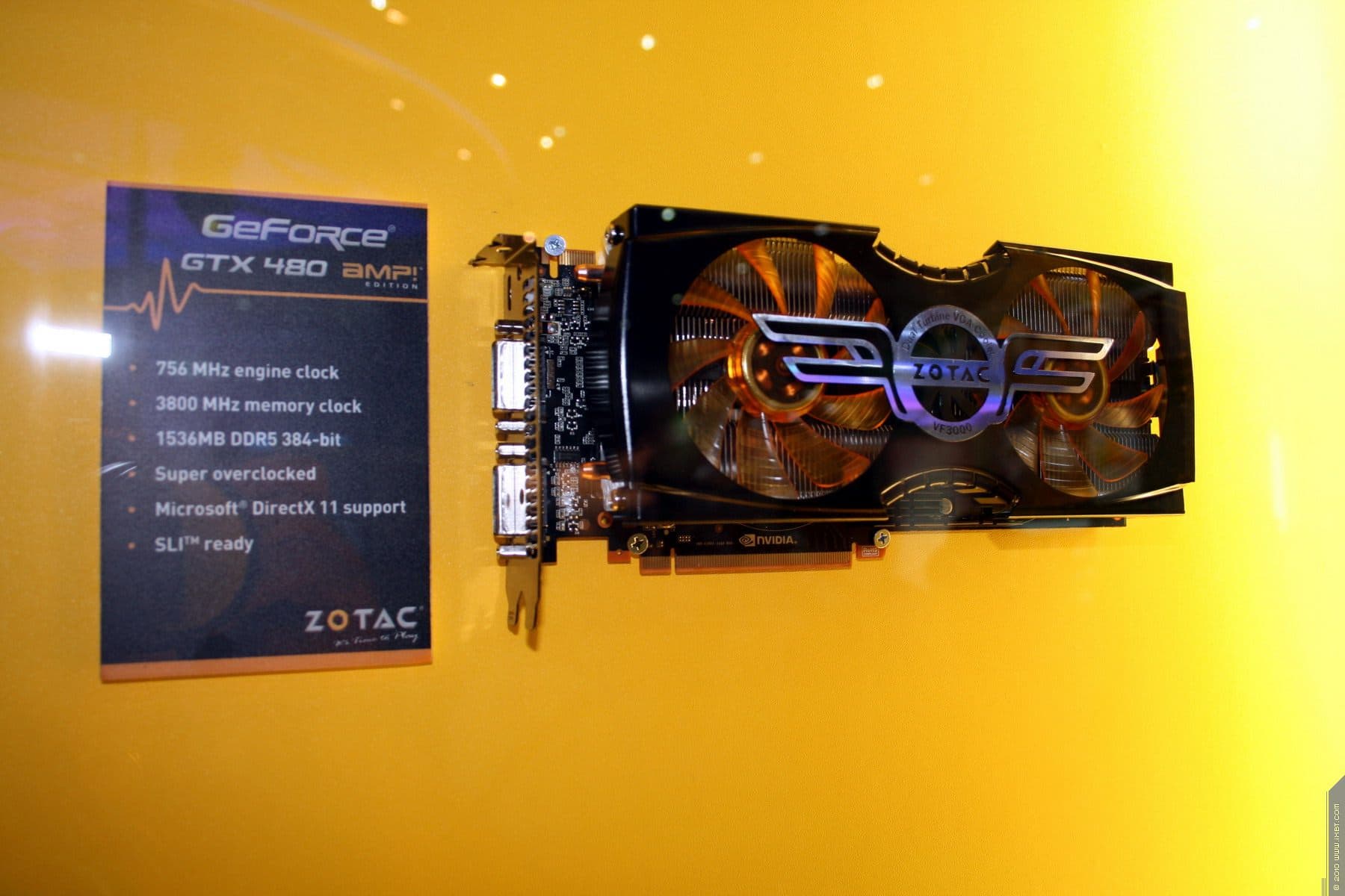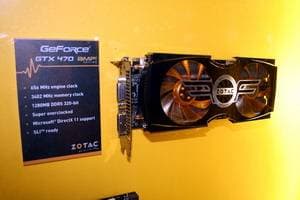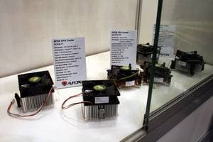 Разумеется, звездами экспозиции были видеокарты последнего поколения от NVIDIA — Fermi — GeForce GTX 4xx серии. Причем как стандартные, так и с повышенным клокингом и снабженные уникальными системами охлаждения. Эти карты относятся к серии AMP Edition. Очень хрупкие и изящные кулеры с кучей тончайших лепестков изготовлены компанией Zalman. В скором времени у нас выйдет материал по этой серии видеокарт от ZOTAC.
