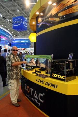 Кроме видеокарт ZOTAC демонстрировал и другие продукты, например, платформу ION от NVIDIA, как и другие мини-системы, из которых собираются маленькие компьютеры, а также мультмедийные центры с расширенными функциямм.