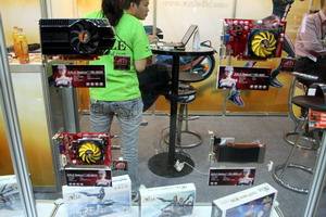 Тем не менее, где посетители вызывают определенный интерес у сотрудников того или иного стенда, в большинстве случаев все идет по сценарию «Ах, посмотрите, какая сисипулечка у нас есть! Она умеет и ..(хихикая)». То есть каждый продукт - разумеется, самый уникальный и превосходный, причем, даже если это просто референс-карта, покрытая соответствующей наклейкой. Но будут рассказывать о том, что они лично страдают сутками, проверяя качество продукции, и что каждый миллиметр осмотрел, и что непременно это сделано на их фабрике. Более того, заговариваются подчас до того, что даже ядро (графический процессор) не какая-то там AMD или NVIDIA сделала, а они сами, причем «вот этими самыми руками». Подавляя в себе смех и улыбку, стараюсь не обидеть бедного тайваньца, которого наняли только на пять дней выставки, и он знать не знал о графике до того, и не будет знать и после.