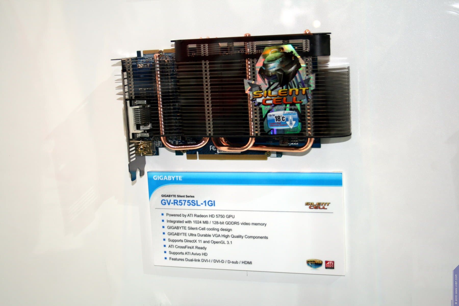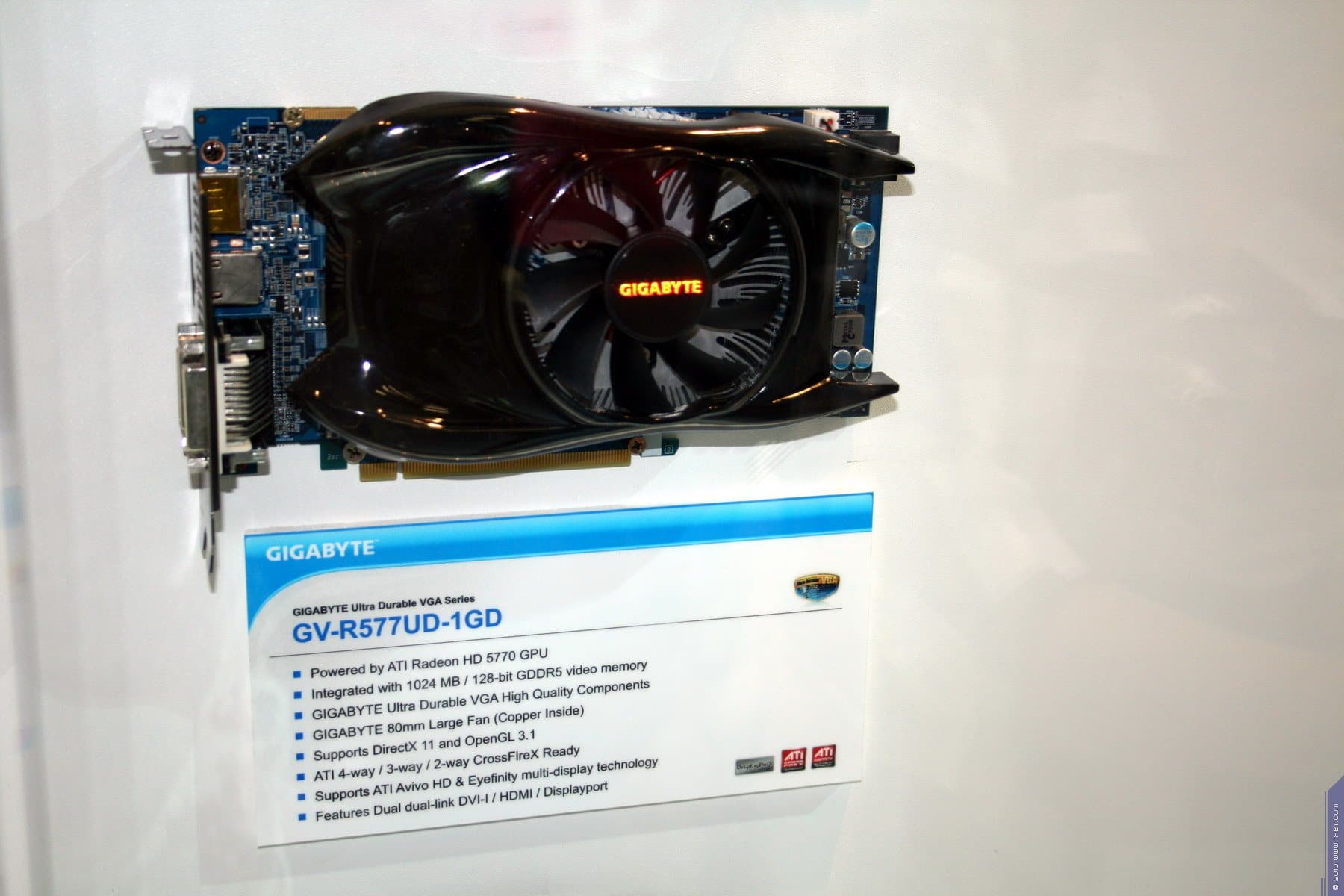 А что касается самой экспозиции, то по видеокартам она была крайне богатой и интересной. Ведь Gigabyte славен не только тем, что выпускает весь ассортимент видеокарт (на базе процессоров как NVIDIA, так и AMD), но и своими уникальными разработками в области устройств охлаждения для видеокарт, а также суперразогнанными вариантами ускорителей. Кроме того, максимально используется возможность установки пассивных систем охлаждения (без вентиляторов). Мы изучали такие продукты не раз, и потому повторяться не стану.