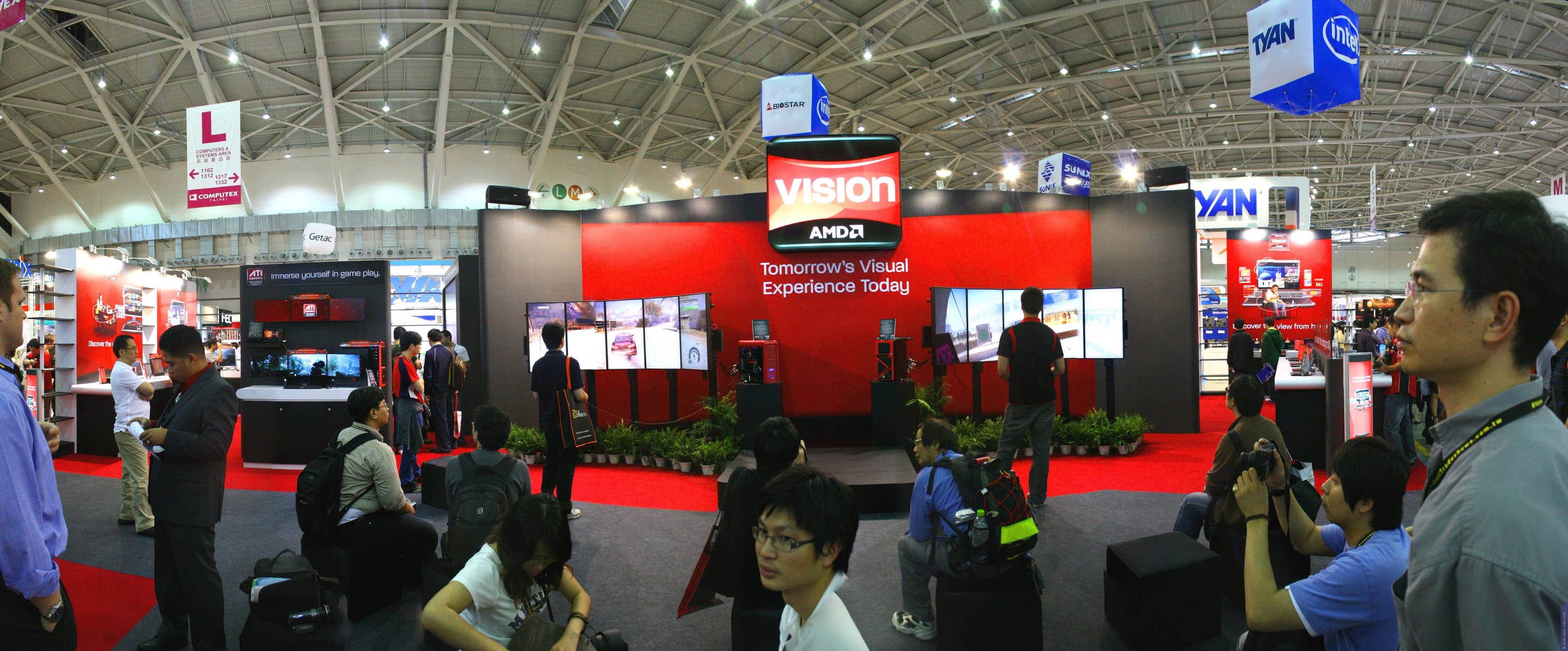 В том же зале особняком от всех остальных маститых брендов, сосредоточившихся в Nangang, расположился стенд компании Gigabyte. Вот уж где поистине было веселье по раздаче «халявы» в виде сувениров, то и дело слышались голоса девочек-призывалочек с криками «G-I-G-A-B-Y-T-E!», просто до хрипоты просящих публику поддержать скандирование названия компании. В знак благодарности раздавались безделушки. Все это есть в видеоролике, который я представлял в третьей части.