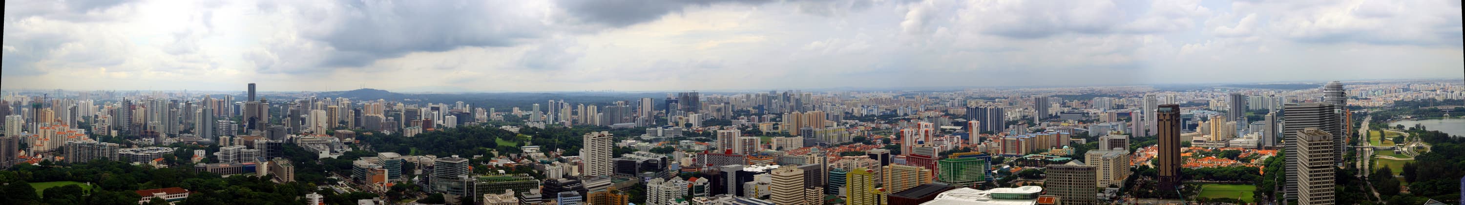 На следующий день я перебрался в другой отель (не потому, что этот список… а так было запланировано), откуда с 63-го этажа получил вот этот панорамный снимок Сингапура.