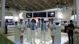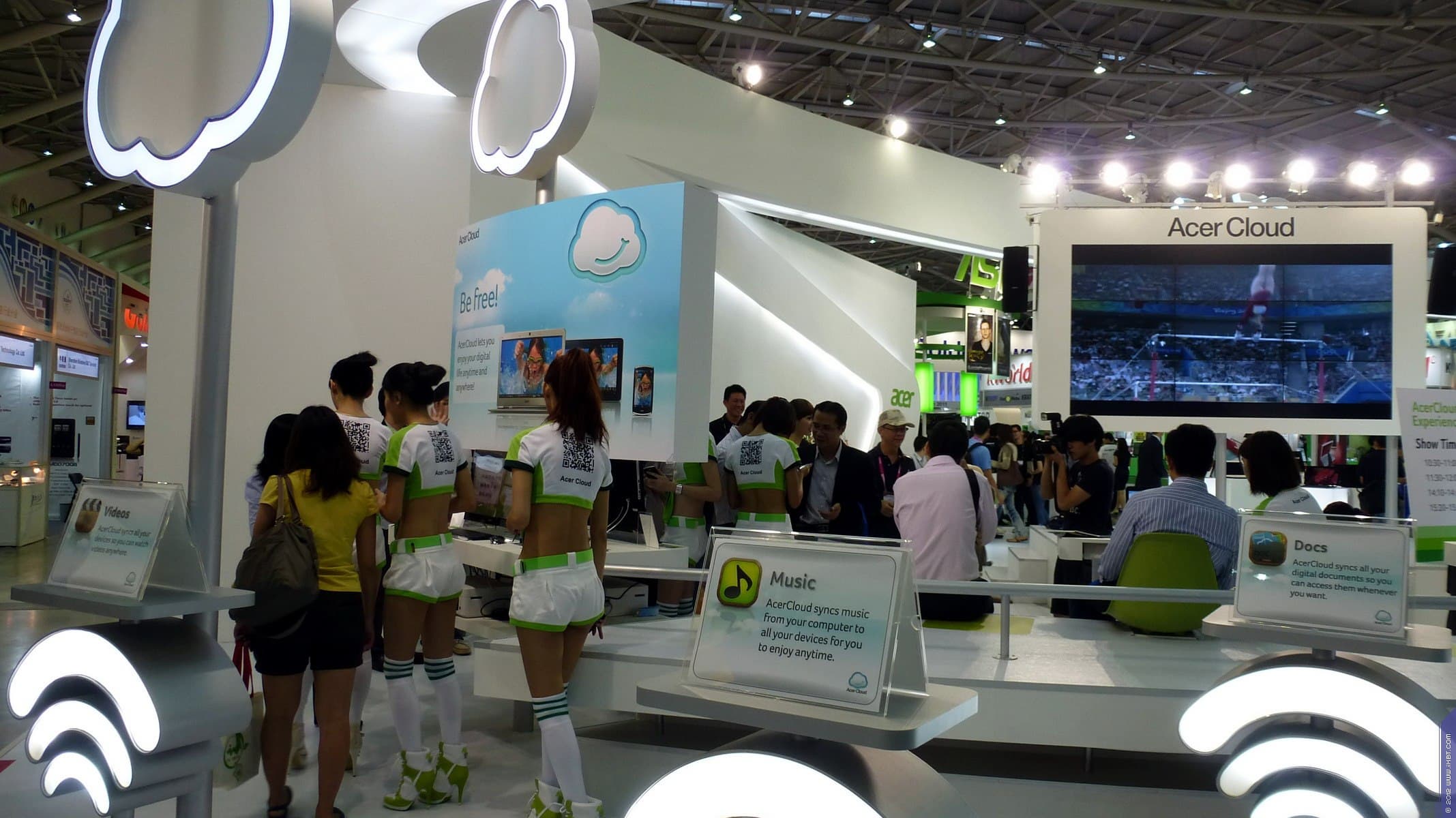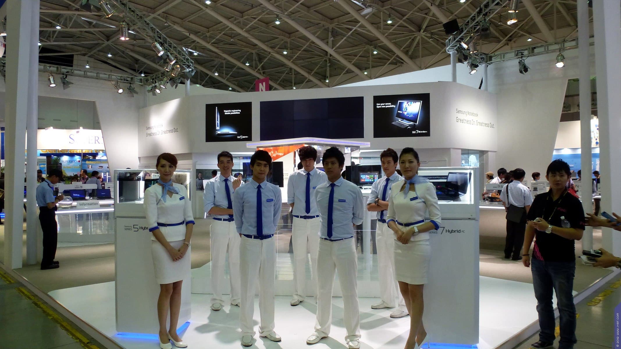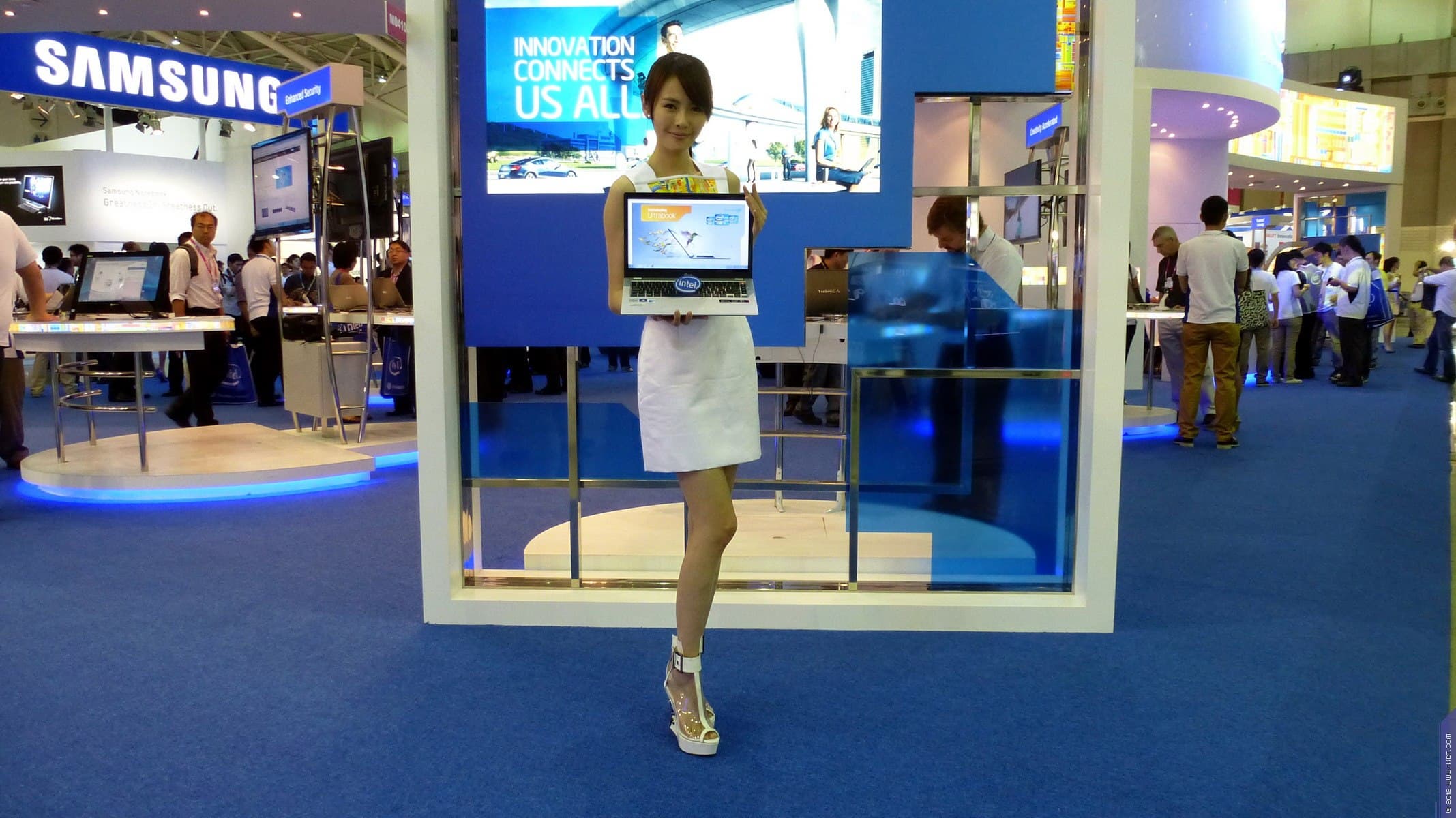 Основные гранды индустрии разместились в зале на четвертом этаже. В том числе и огромный стенд Samsung. Детально об экспозиции расскажут коллеги, поэтому лишь ограничусь парой видовых фотографий. Персонал тщательно выбирался, чтобы все были симпатичными и приятными в общении, поэтому нередко именно на этот стенд забегали телевизионные команды, а также делегации глянцевых изданий, чтобы провести очередную фотосессию сотрудников стенда Samsung :-)