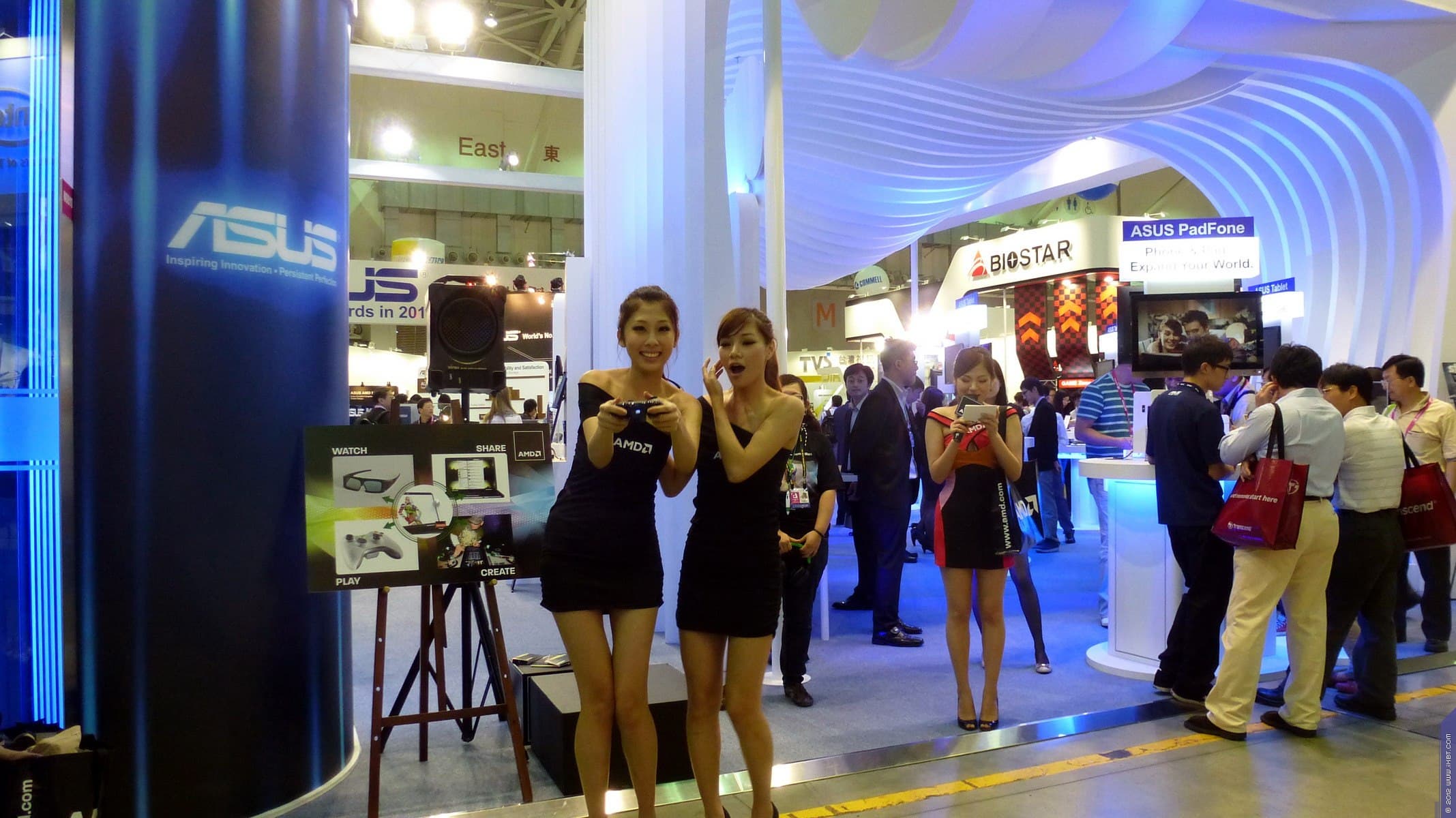 На стенде ASUS две подружки фотографировали всех подряд, чего-то делали с камерой, и потом падали от смеха, смотря на экран… При этом ведя театральные диалоги с жестикуляциями.