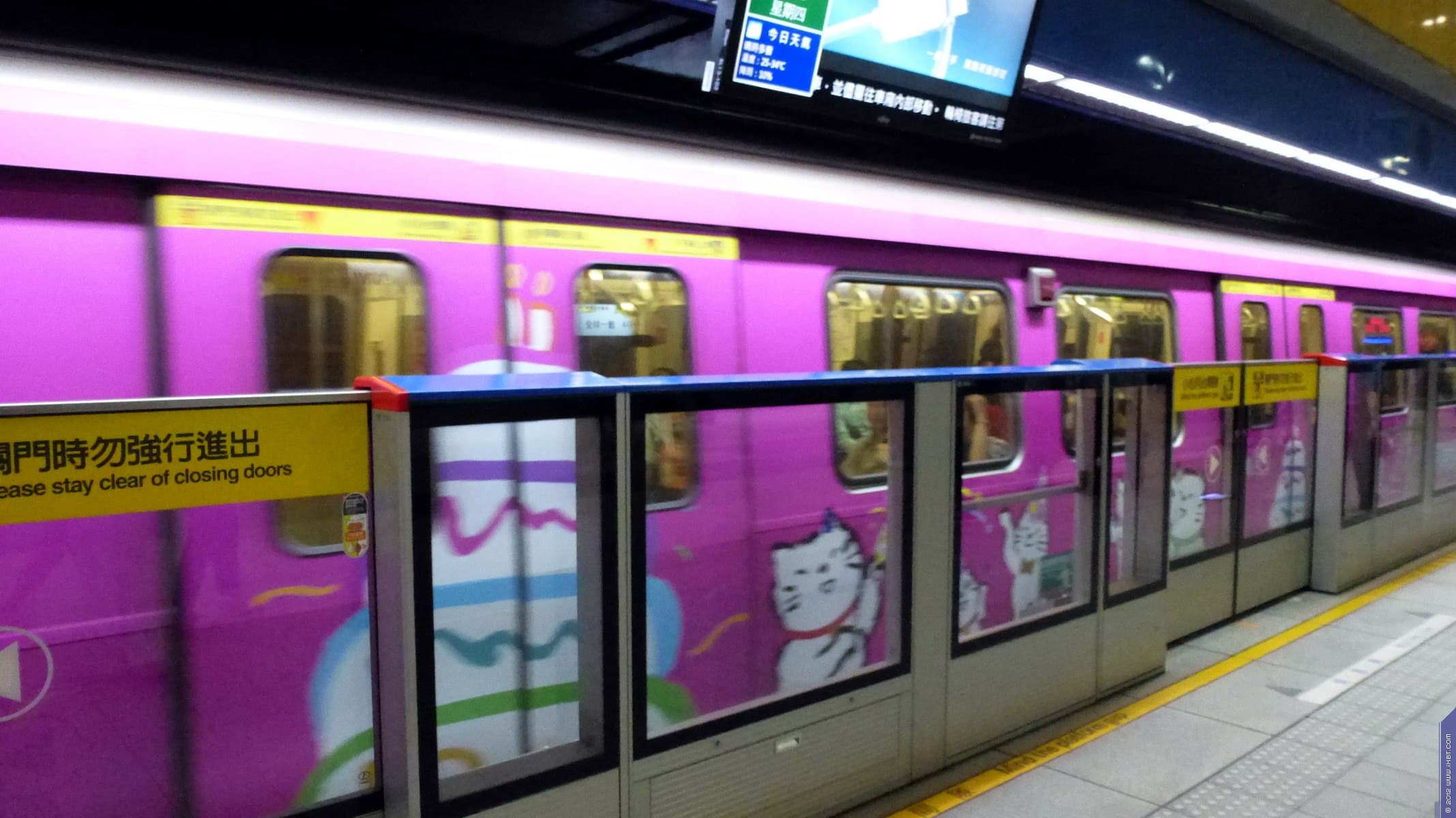 | Тайбэйское метро мне нравится очень многим. Я уже писал частично в первой части об этом, повторю. Прежде всего, широчайшая информатизация! Указатели, информаторы — везде и всюду! Карты с расположением выходов со станции, карта кусочка района, чтобы понимать, куда и на какие улицы ведут выходы. Удобство по входу и выходу, лифты, офисы рядом с турникетами, автоматы про продаже всех видов билетов… Дублирование всей информации на английском языке. Ну и еще, конечно же, вот такие яркие раскраски поездов, что часто встречаются. | ![]() |