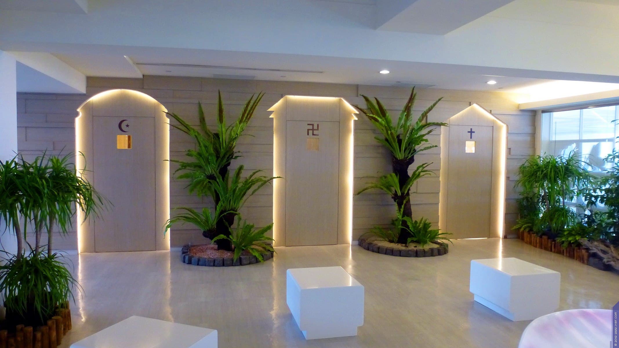 | Также есть залы отдыха с комнатами для молитв, четко разделенные по религиям. Никогда раньше такого не встречал. | ![]() |