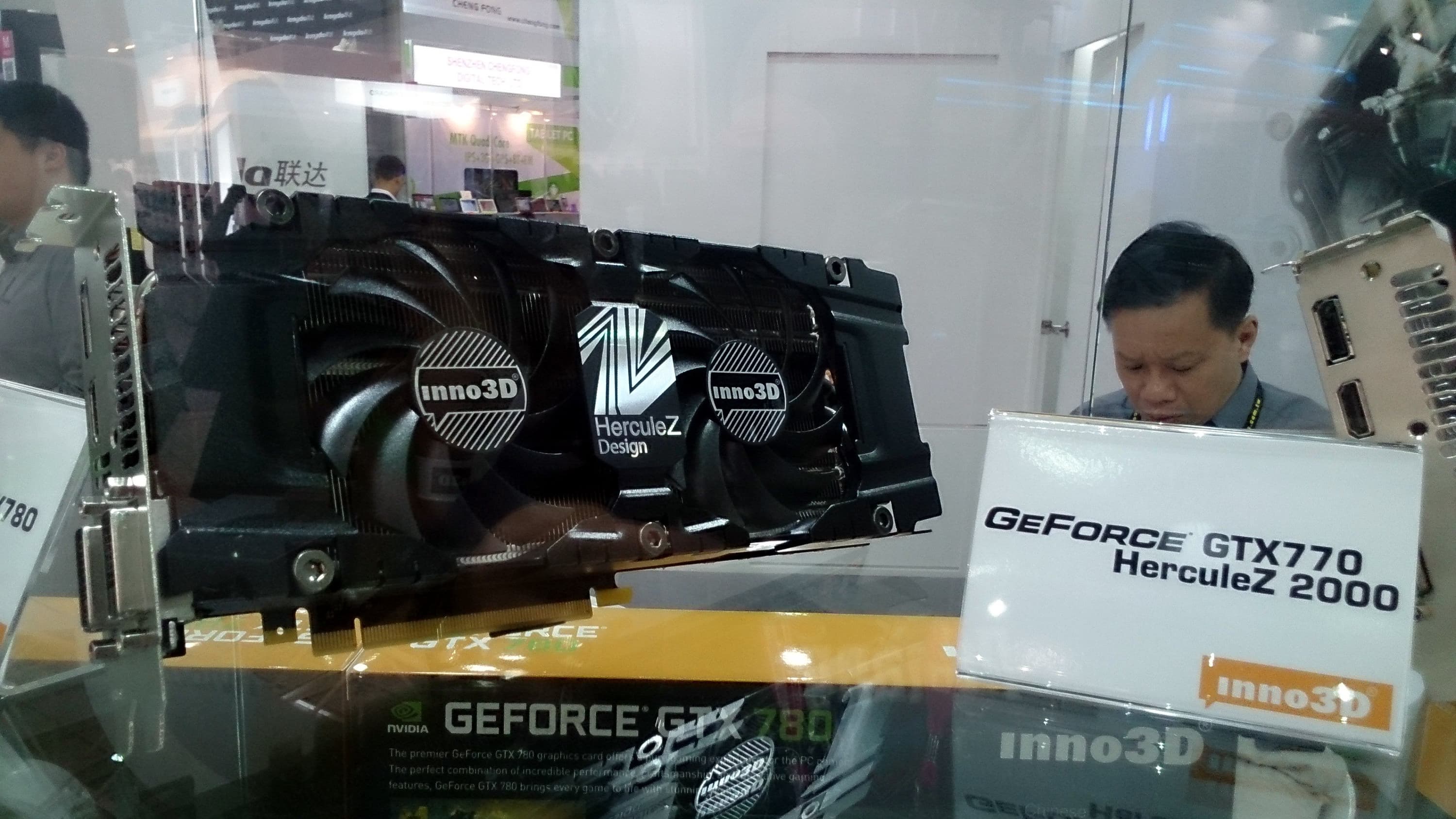 Напомню, что Inno3D это торговая марка компании InnoVision, выпускающей видеокарты, основанные на процессорах от NVIDIA (GeForce). Когда-то этот бизнес был у фирмы 100%-ным, однако в связи с падением рынка ПК, компания стала заниматься выпуском и иных продуктов. Детально я рассказывал об этом год назад в материале по Computex 2012. Cегодня мы сконцентрируемся все же на VGA-картах. Заметил, что компания почти единственной и первой представила аж две модели GeForce GTX 780 собственного производства: с водяным охлаждением и фирменной СО iChill, которая в данном случае получила название… Hercules… Я даже открыл рот от удивления, ведь марка Hercules давно принадлежит компании Guilemott, которая ушла с рынка видеокарт еще лет 7 назад. Однако это мне так прочиталось. На самом деле применен ловкий способ ухода от судебных исков: InnoVision использует марку не Hercules, а HerculeZ. Изменена всего одна буква, и уже не придраться. Ну что же, интересный прием.