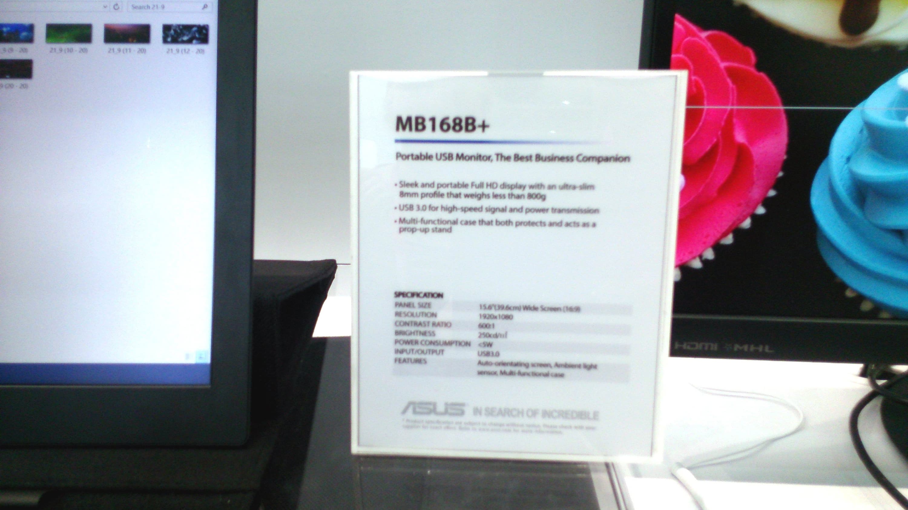 А это портативный монитор с USB-поключением. Имеет размер диагонали 15,6 дюйма, но вместе с тем разрешение 1920×1080, то есть матрица у него очень хорошая. Минимальный вес и удобство в перевозке делают этот продукт весьма востребованным в дороге для тех, у кого ноутбуки с очень маленькой диагональю. Ведь вес монитора всего 800 граммов. Какой-нибудь легкий ультрабук на 1 кг, плюс монитор 800 г… Получаем прекрасную машинку для тех, кто не хочет портить зрение на маленьком экране ультрабука. И суммарный вес 1,8 кг сравните с весом огромных ноутов, дающих 1920×1080 или даже меньше: 4 кг и выше.