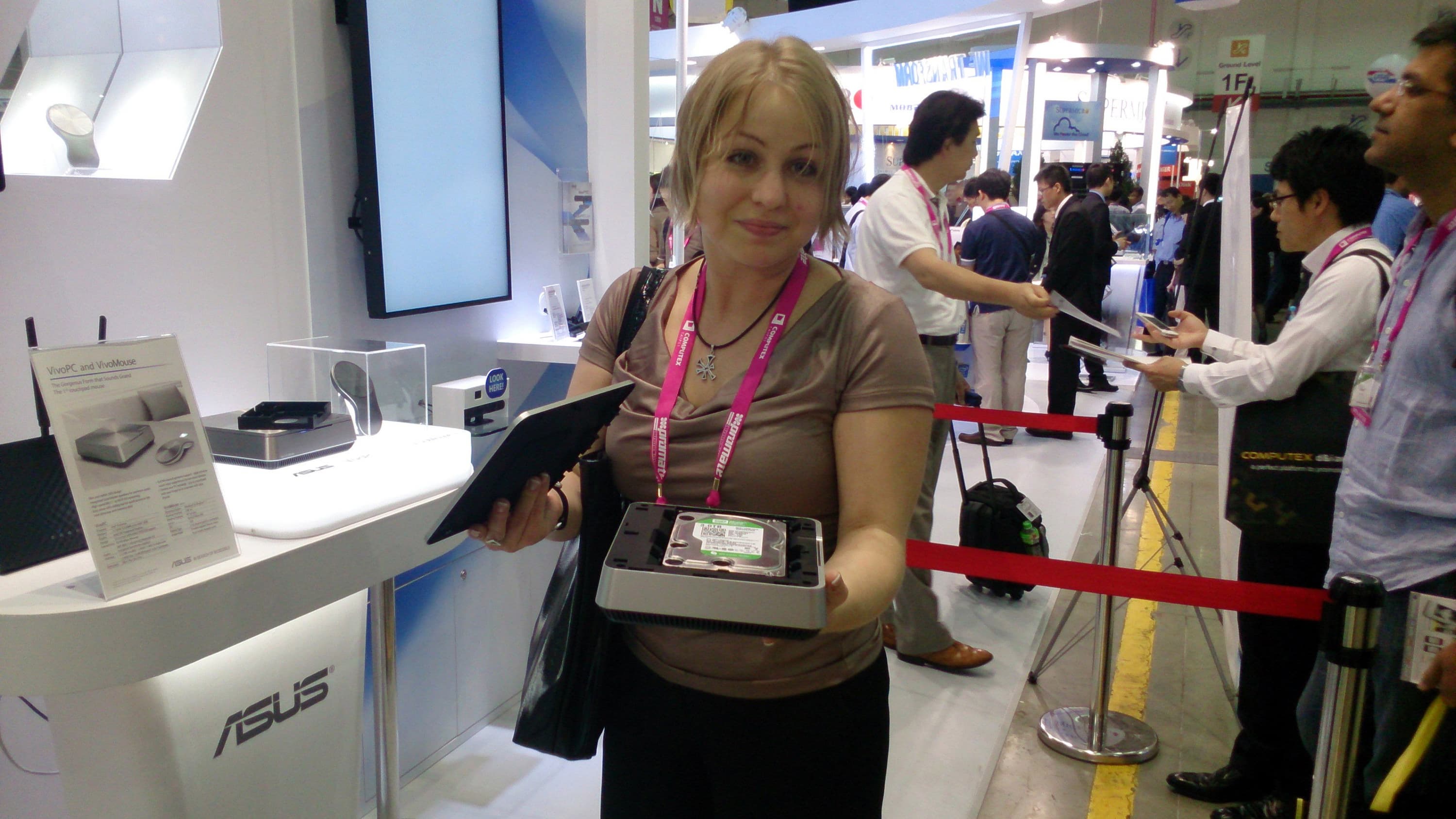 Следует особо отметить, что гидом по стенду ASUS, как и в прошлом году, стала очаровательная Татьяна Лысанова, менеджер российского представительства компании. Она очень профессионально, детально и интересно рассказывала о том или ином продукте среди громадного ассортимента.