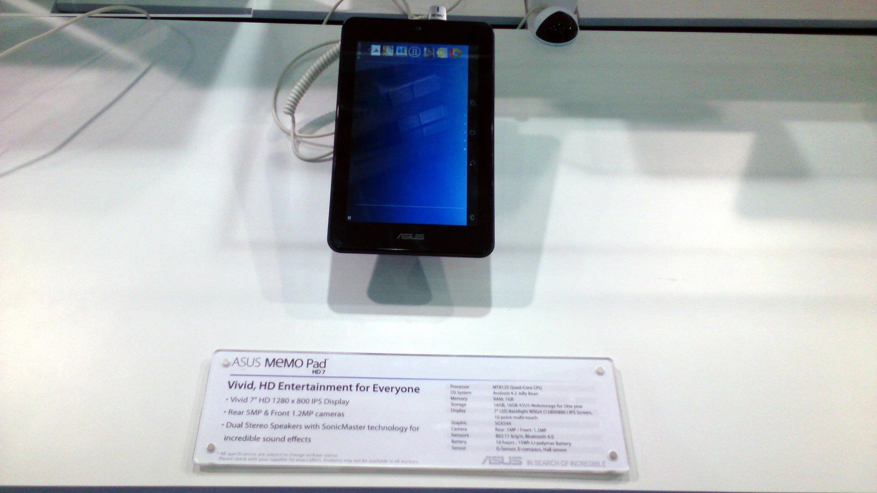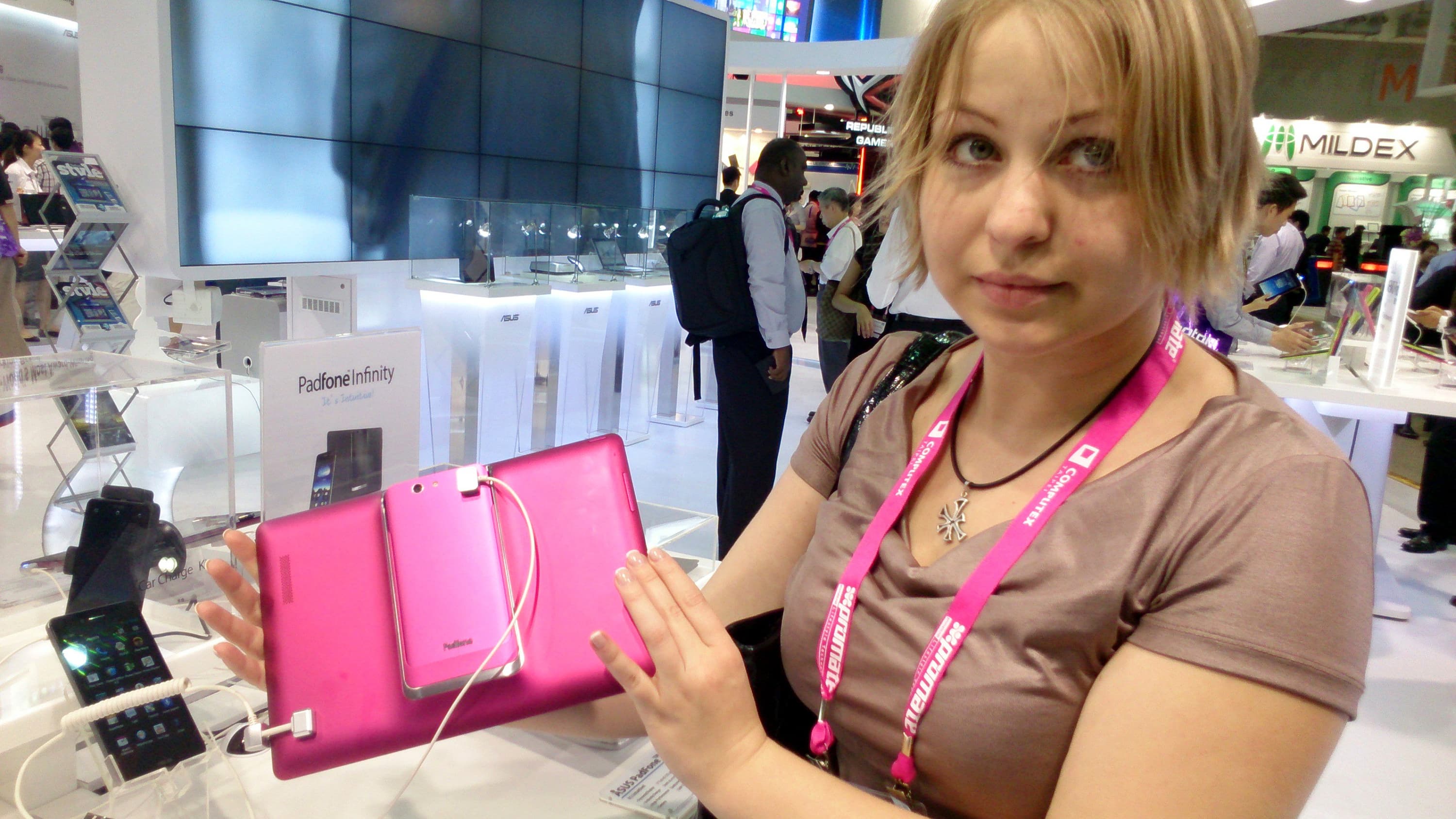 | Конечно же, изюминкой мобильного сектора продуктов ASUS является знаменитый ASUS PadFone Infinity. У нас также есть по нему обзор. Это самый современный и топовый смартфон, который трансформируется в планшет путем установки в ASUS Padfone Infinity Station. Собственно, все детали в обзоре. На стенде присутствует и ASUS Memo Pad HD7, который также уже детально исследован коллегами. Это семидюймовый планшет, имеющий весьма достойную и современную архитектуру: однокристалльную SoC MT8125 c 4-ядерным CPU, 1 ГБ оперативной памяти и флэш-накопитель на 16 ГБ. Остальные детали также в обзоре. | ![]() |