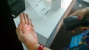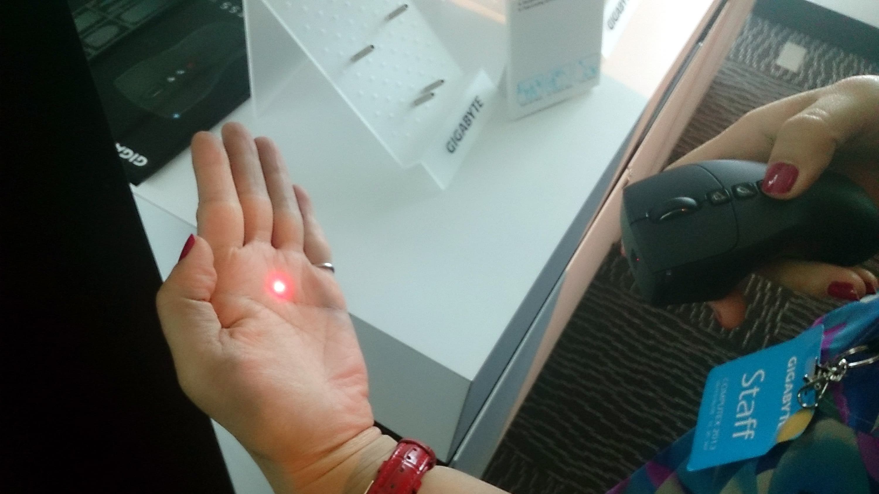 А вот эти продукты — сверхновый и сверхсекретный «стафф». Именно поэтому стоящий у данных Vivo-устройств сотрудник работал чуть ли не охранником. Даже Татьяне не сразу позволил взять Vivo-mouse. Это первая мышь с тачпадом. Курсором можно управлять, как двигая саму мышь, так и держа ее в руке, используя тачпад. Разумеется, мышь работает по беспроводной технологии и использует Wi-Fi.