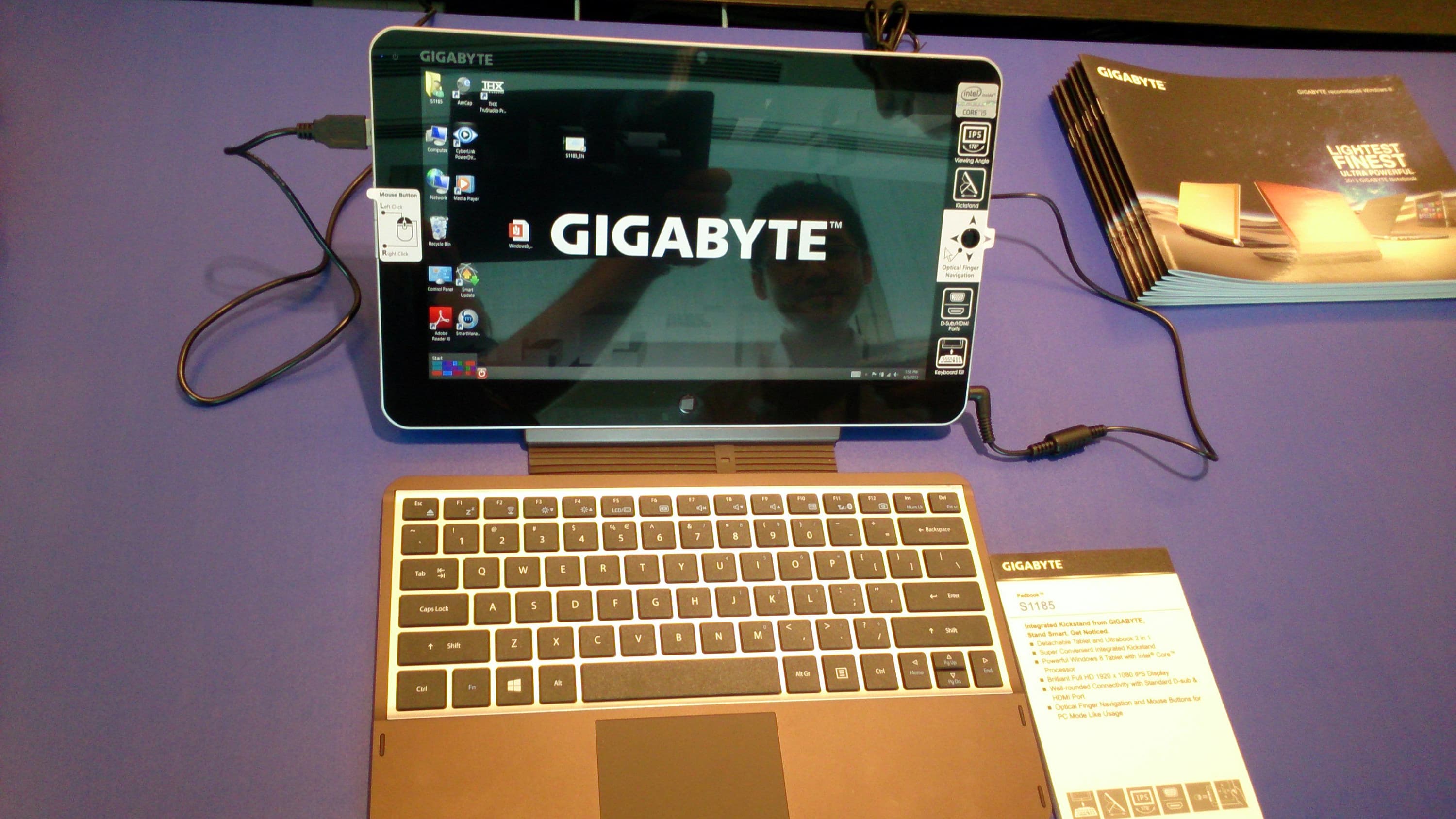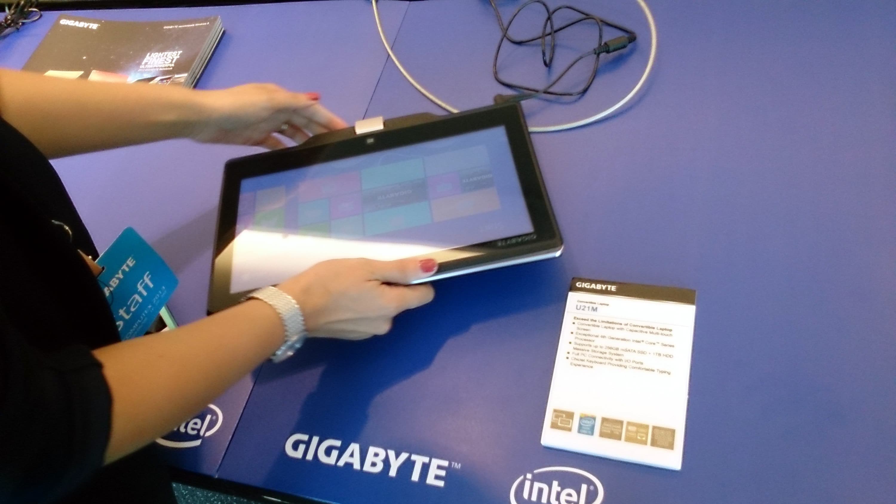 Область мобильных решений… Какая же сейчас это волнующая, трогающая за самое живое область! Вот и Gigabyte не остался в стороне. Если у ASUS есть Transformer AiO, то здесь… U21M (фу, какое неказистое название!). Там экранная часть снимается с подставки, образуя планшет, а тут планшет быстро превращается в ноутбук и наоборот.