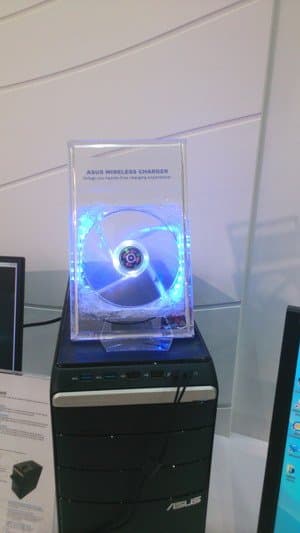 | Еще один весьма любопытный продукт: корпус с беспроводной зарядкой. Как пример, на площадке для зарядки установлен особый вентилятор, питающийся по стандарту Qi, разработанному Консорциумом беспроводной электромагнитной энергии (Wireless Power Consortium, WPC) для индукционной передачи энергии на расстояние до 4 см. Если имеется Qi-совместимый смартфон (поддерживающий такой способ зарядки), то его также можно положить на площадку для зарядки. Весьма удобно ведь. Для такого способа зарядки сертифицированы смартфоны Nokia Lumia 810/820/822/928/920/920T, Samsung Galaxy S4, LG E96, HTC PM23100/PL83200 и пр. Полный список устройств, сертифицированных на использование данной технологии, можно посмотреть здесь. | ![]() |