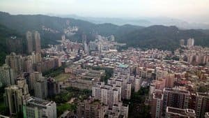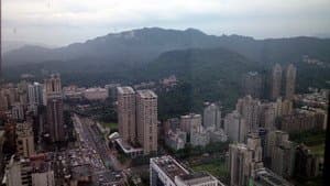 Как я уже ранее сказал, встреча с Gigabyte у меня состоялась на 36-м этаже небоскреба Taipei101. И вот такую панораму на Тайбэй можно лицезреть оттуда. Напомню, что столица Тайваня лежит в этакой чаше, образованной горами, поэтому во влажный сезон осадки могут перевалить через «ограду» и так и выливаться сутками на город, пока тучи не иссякнут.